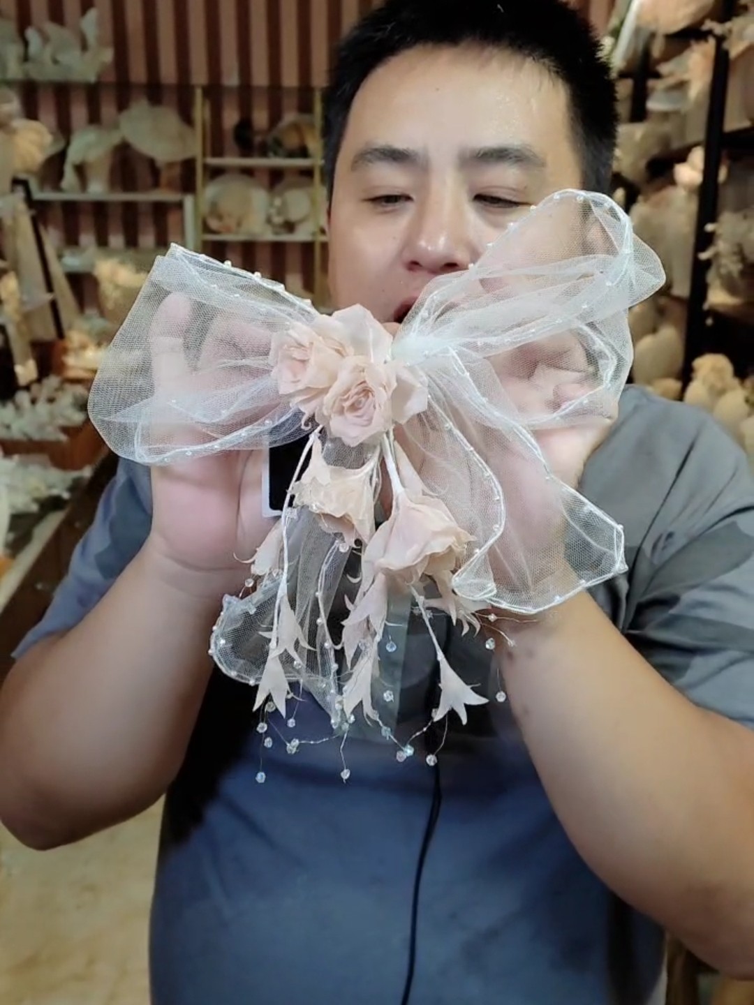 Оригинальный аксессуар для волос ручной работы с бантиком для невесты