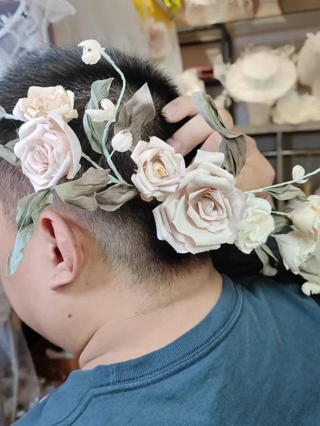 Mei High -Tech Color Matching Retro Forest The Forest Flowermade Head Head Jewelry Внешняя сцена фото фото модель модель съемки