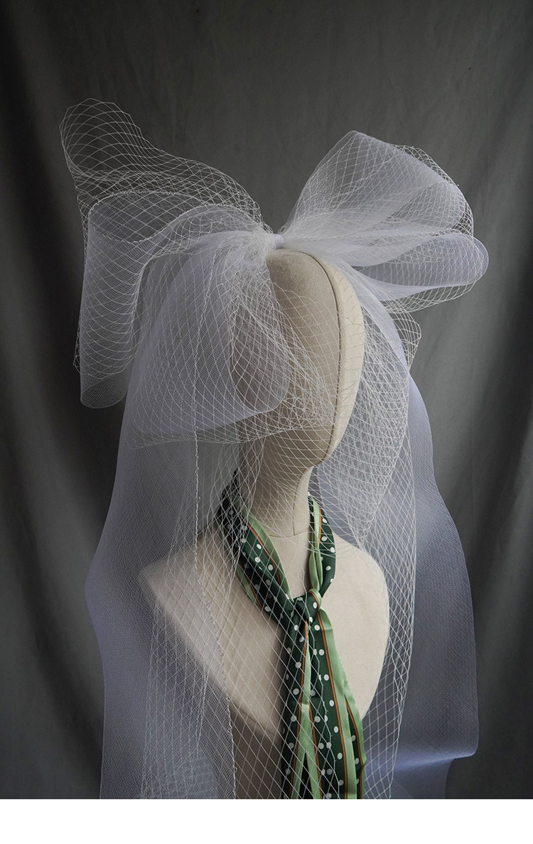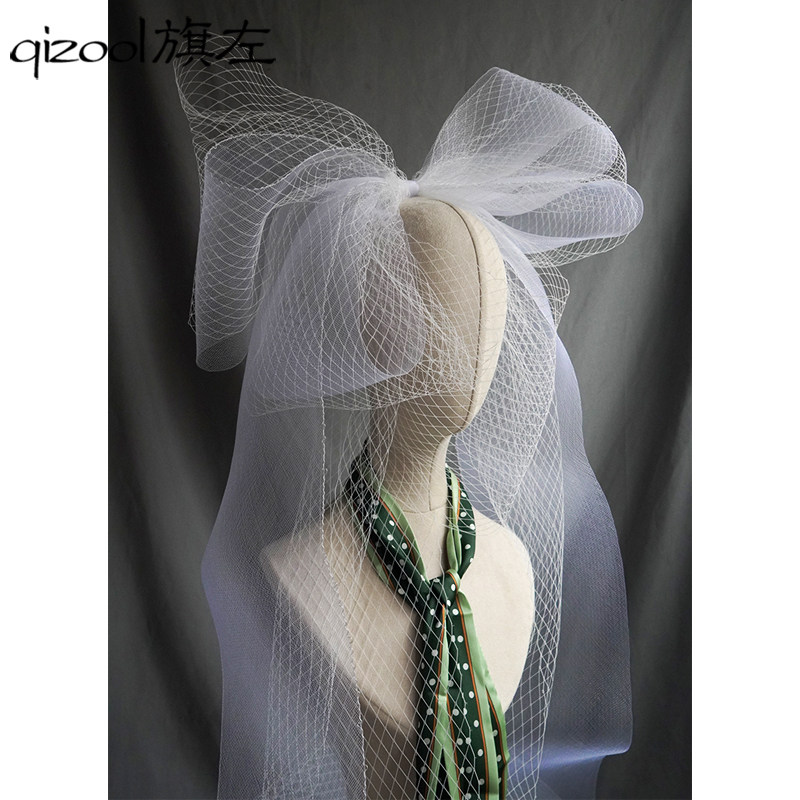 Длинный белый аксессуар для волос с бантиком для невесты, длина макси