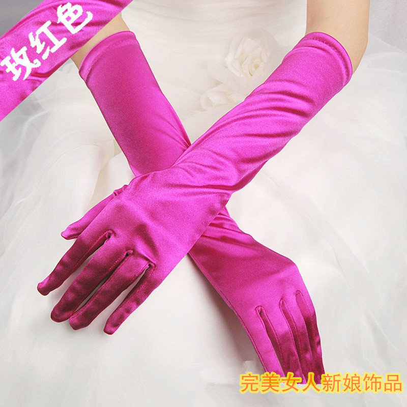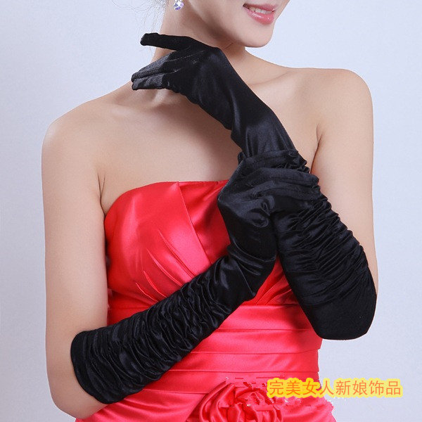 Черное синее свадебное платье, красные желтые розовые длинные перчатки, аксессуар, средней длины