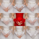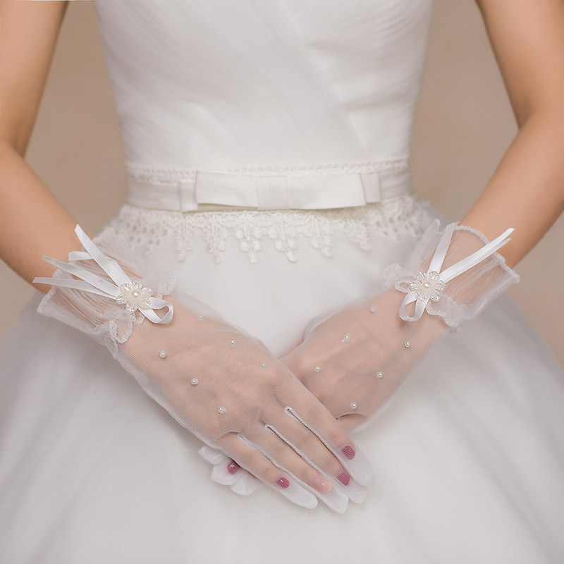 Перчатки для невесты, белые красные свадебные туфли, короткое длинное кружевное сетчатое свадебное платье