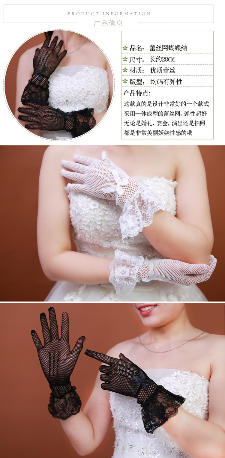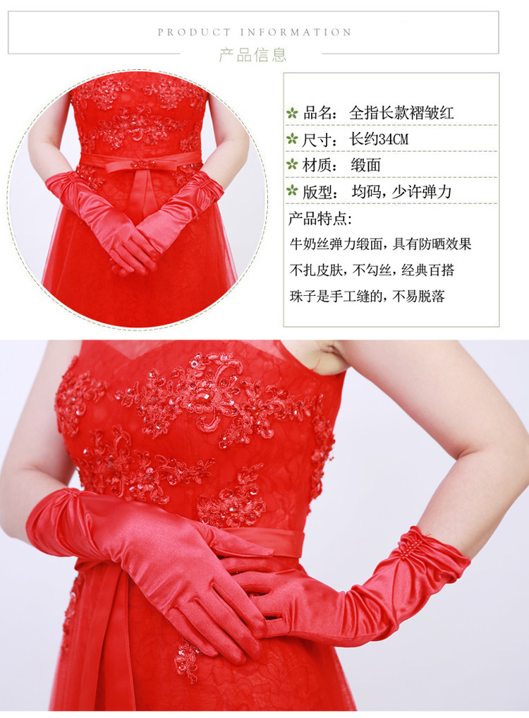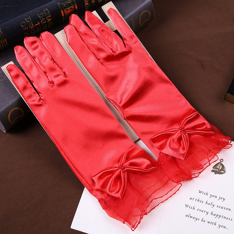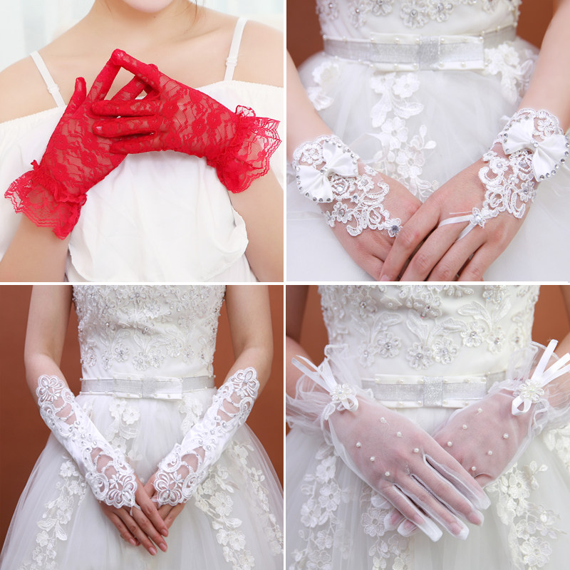 Перчатки для невесты, короткий длинный кружевной осенний красный комплект, защита от солнца