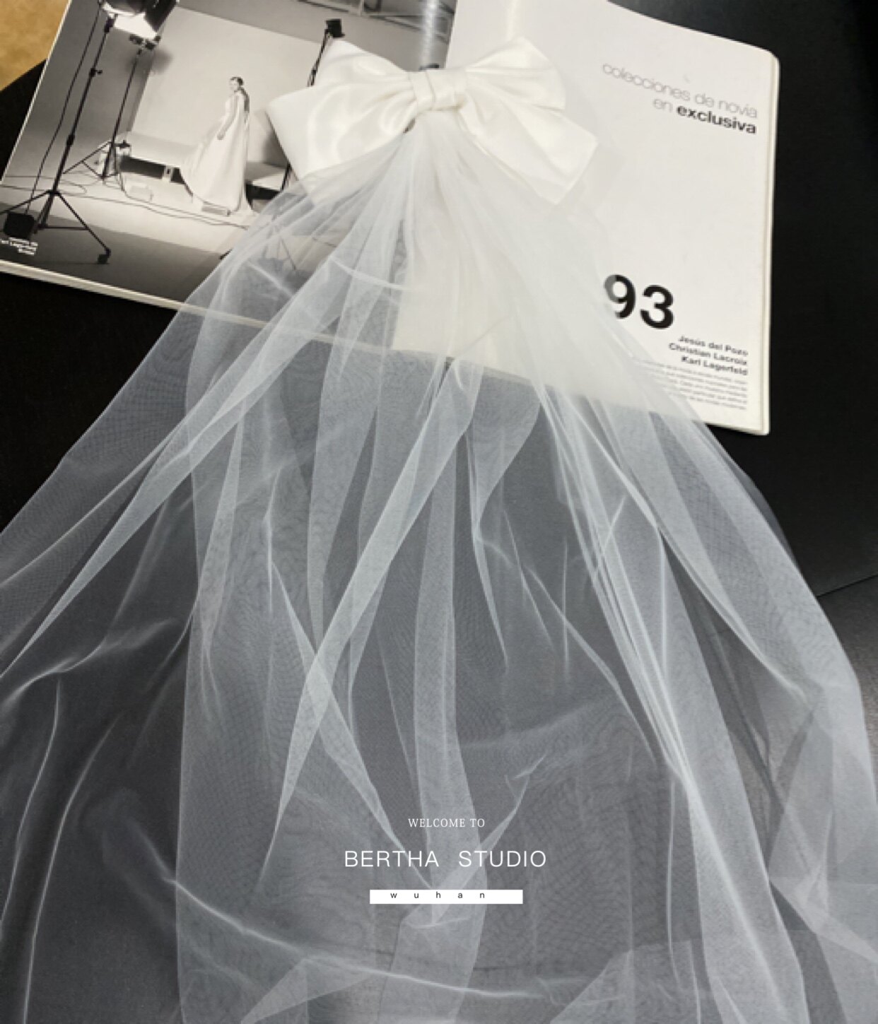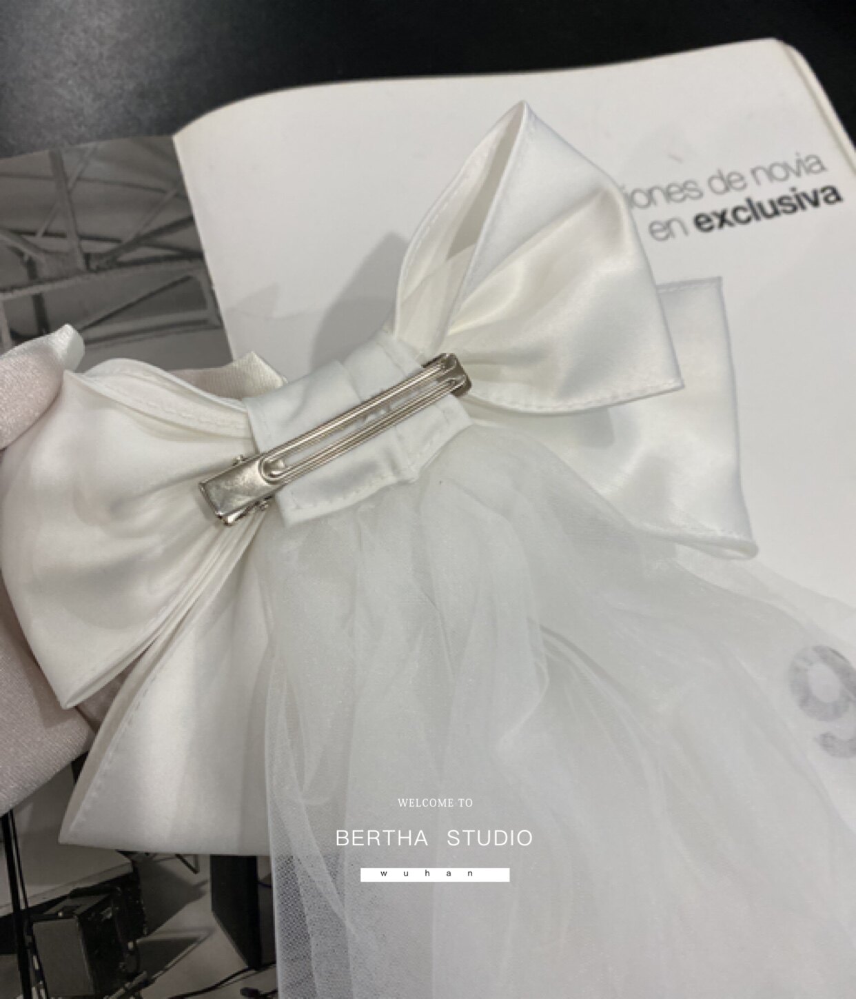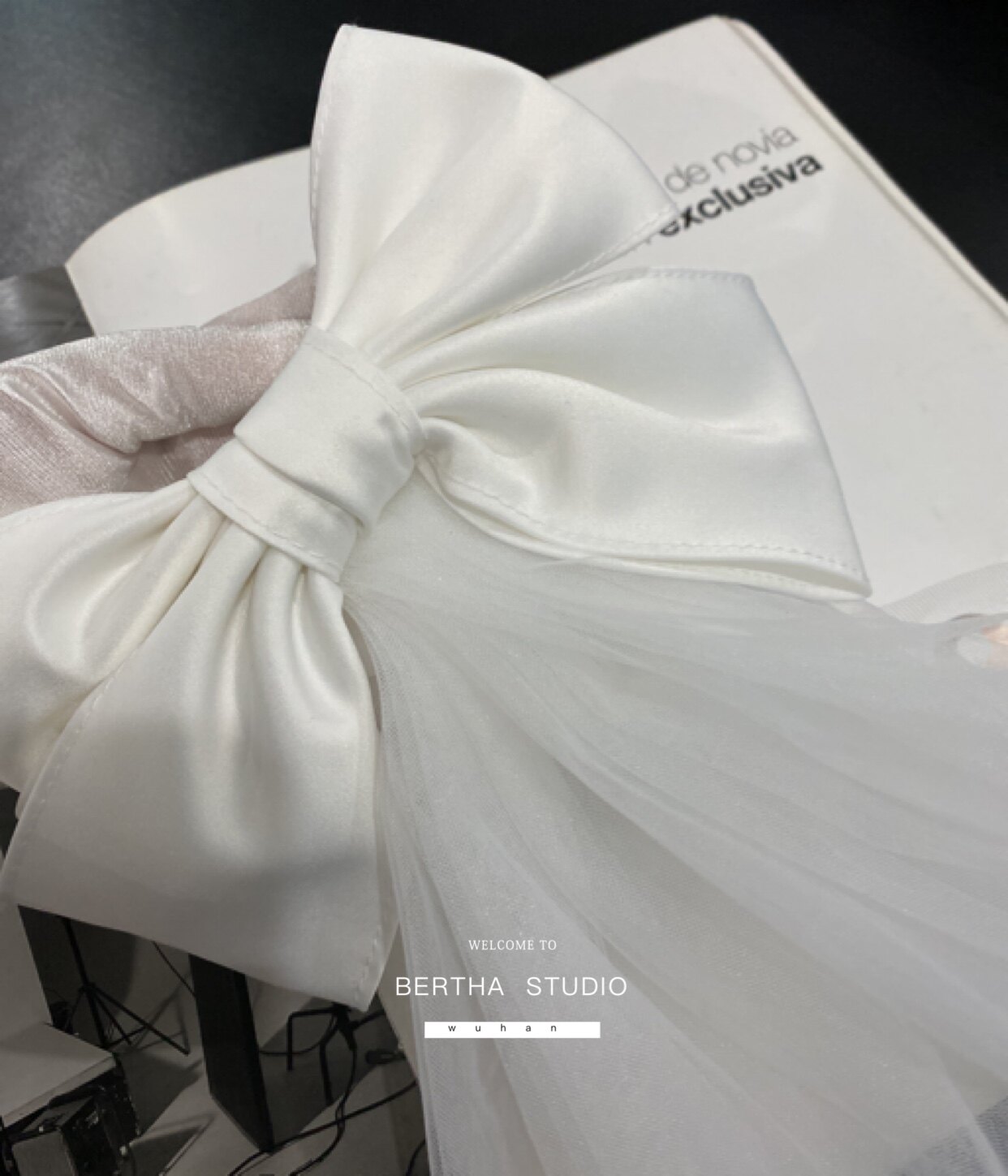 Берта дизайн сатиновый материал трехмерный большой лук с двойным свадебным платьем для невесты в длинной модели в длинной модели