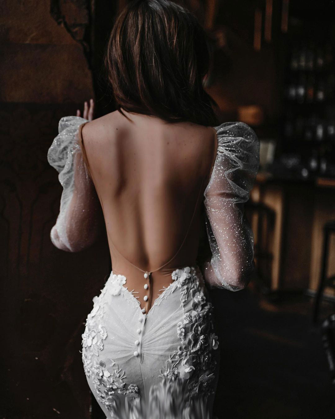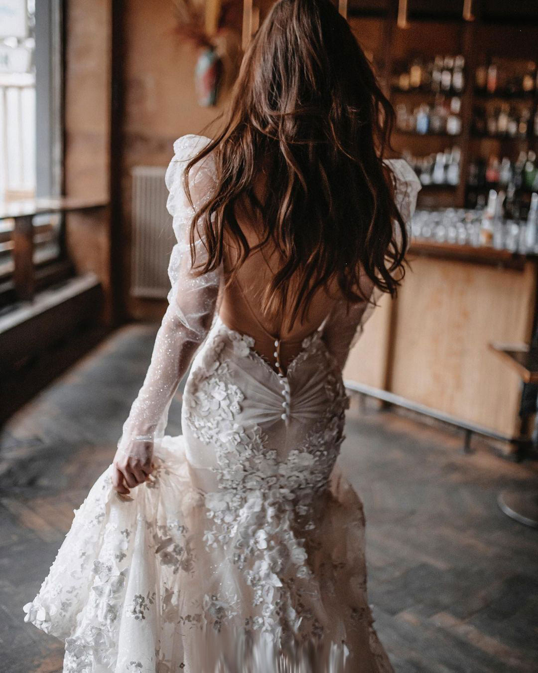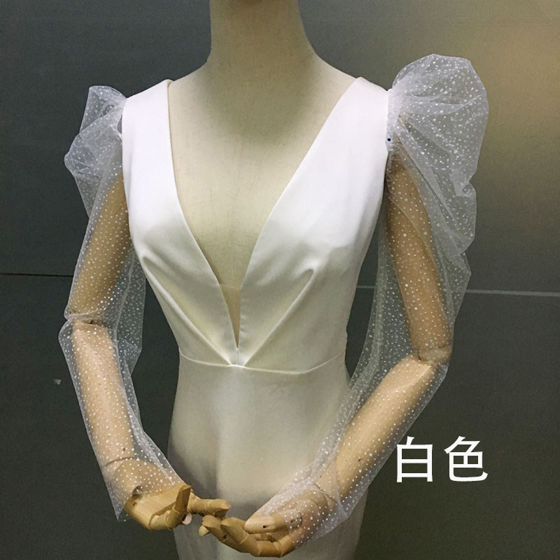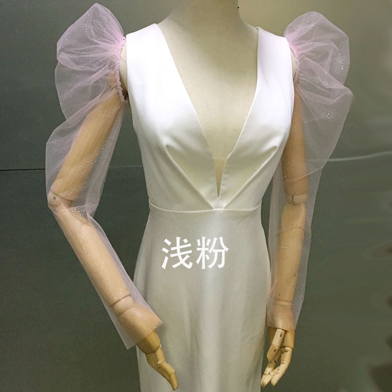 Свадебное платье невесты Длинные модели покрывают рычаг длинная сетка пряжа ручная пряжа пузырька длинная рукава яркие порошковые свадебные рукава