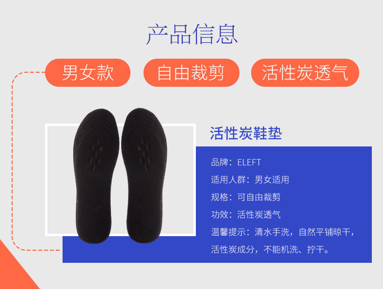 ELEFT активированный уголь, сетка из бамбукового угля, сетка для глаз, впитывающая пот, дышащая, полноразмерные мужские и женские стельки, ежедневный дезодорант с активированным углем