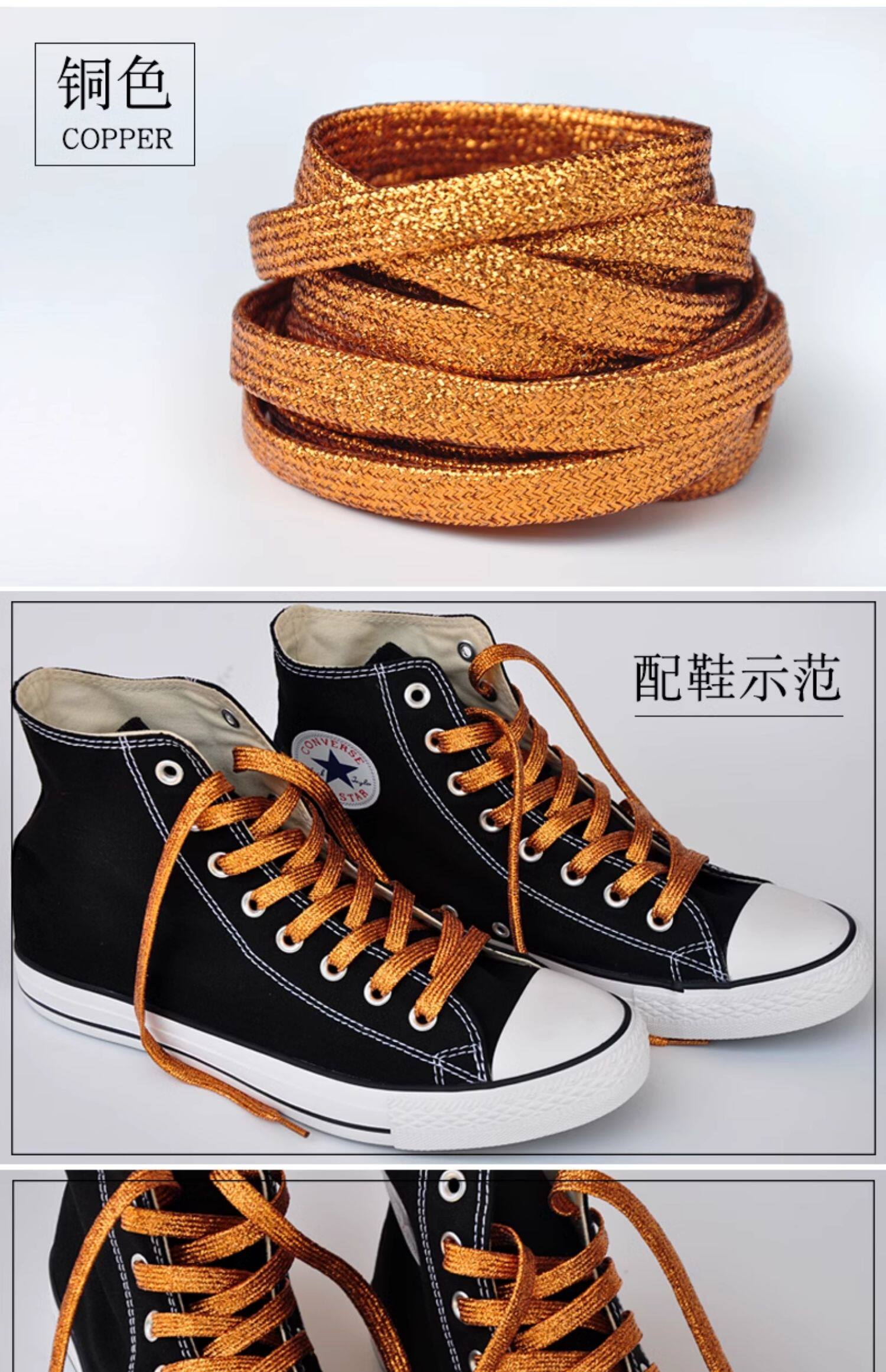 Золотые бронзовые металлические мигающие трендовые спортивные шнурки подходит для мужчин и женщин