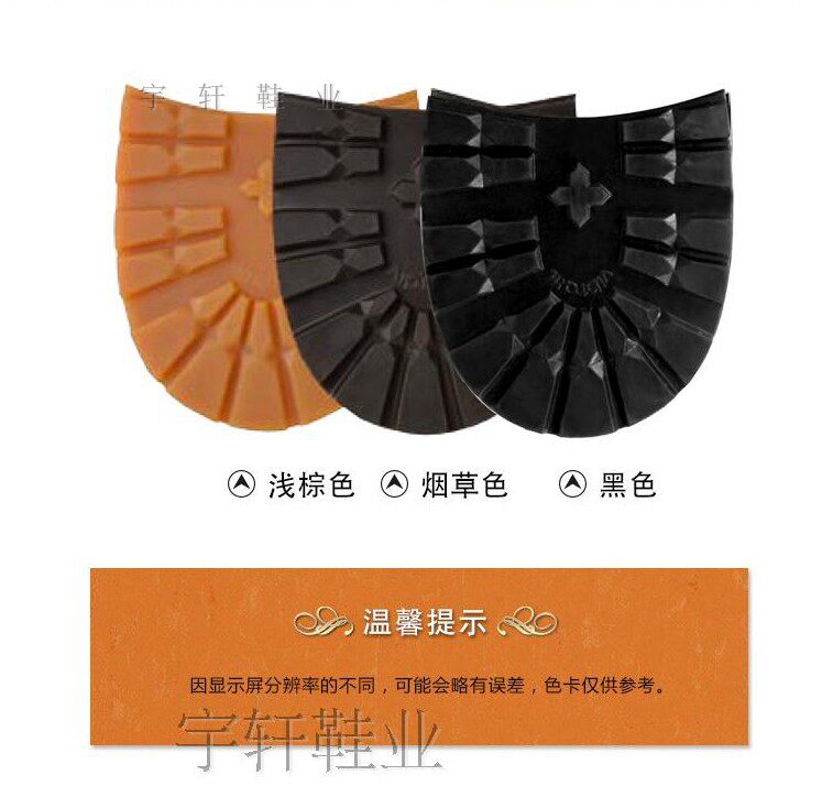 Функция: подошвы кожаной обуви для обуви, или более тонкий из подошвы обуви для защиты подошвы обуви, заставьте подошвы нелегко изнашиваться и играть роль износа и не -сластика.Особенно кожаные туфли, особенно переднее дно, хотя кожаный фон относительно дышащий, но поглощение воды является мощным, его также легко гнить, износ очень быстрый, срок службы обуви не будет длинной, туфли прилипаны и вы можете надежно носить кожу.