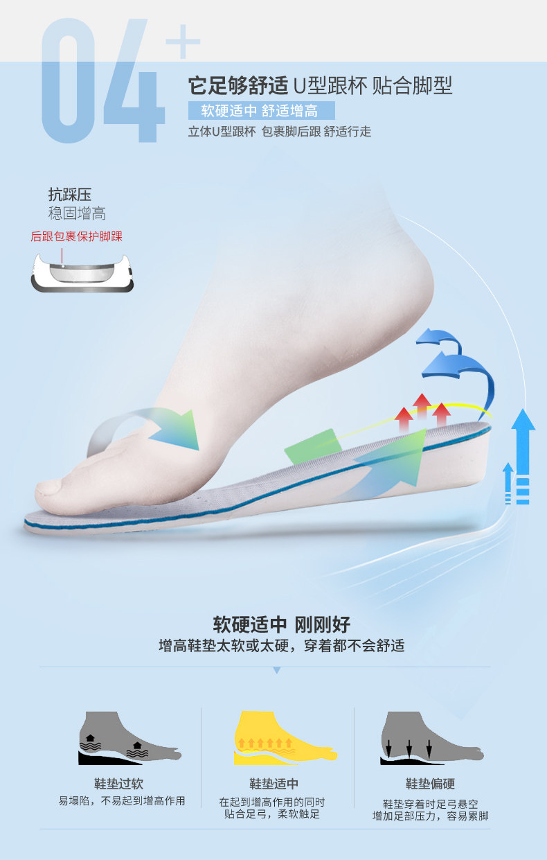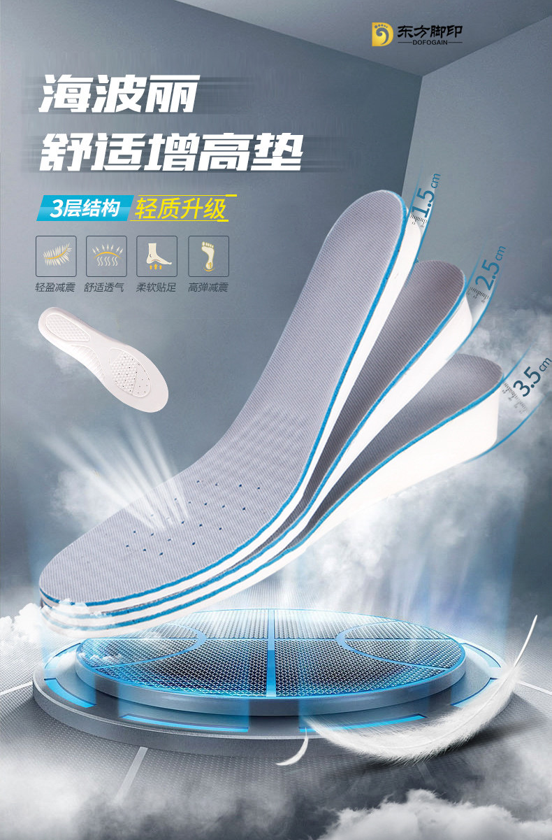 东方脚印 Невидимые мужские стельки для увеличения роста подходит для мужчин и женщин для отдыха