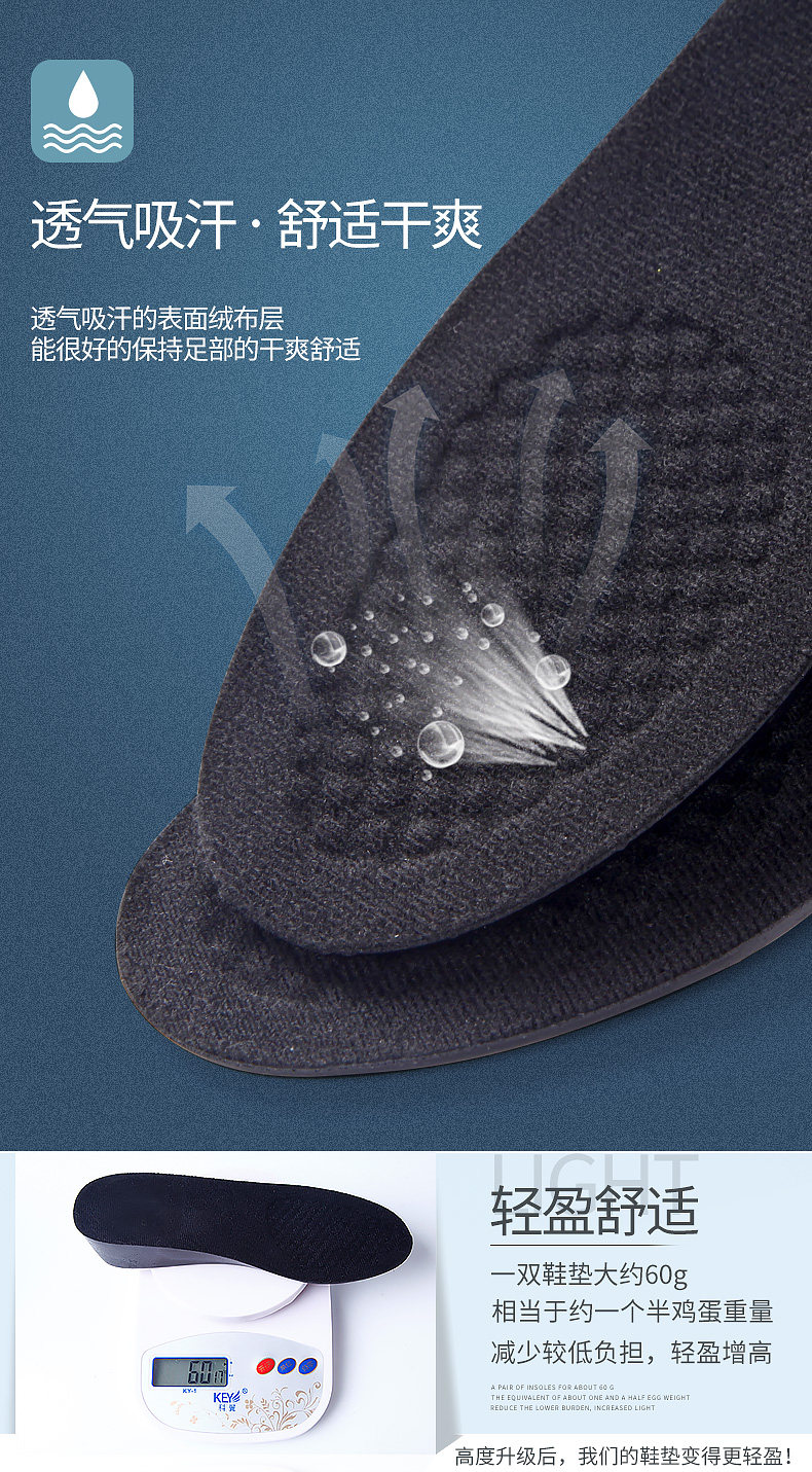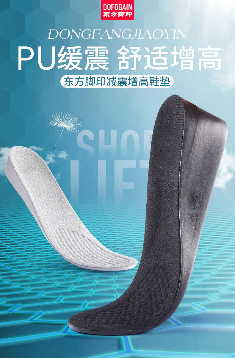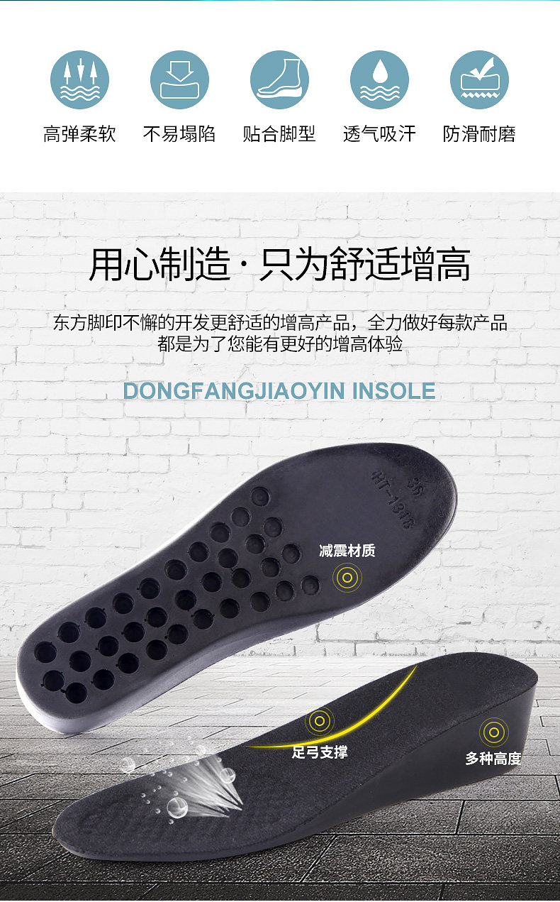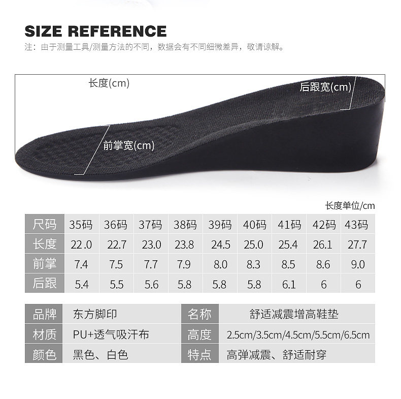 东方脚印 Спортивный невидимый дезодорант подходит для мужчин и женщин, стельки для увеличения роста, увеличенная толщина