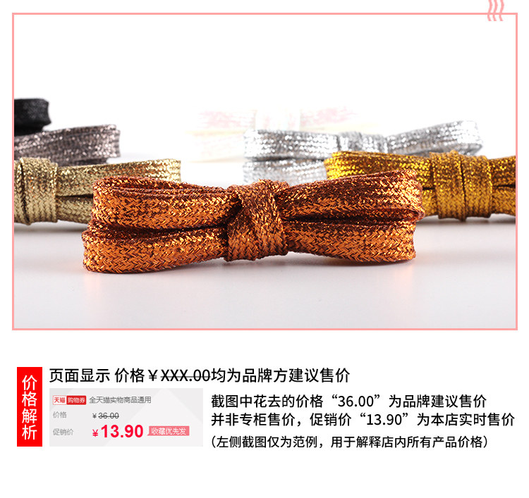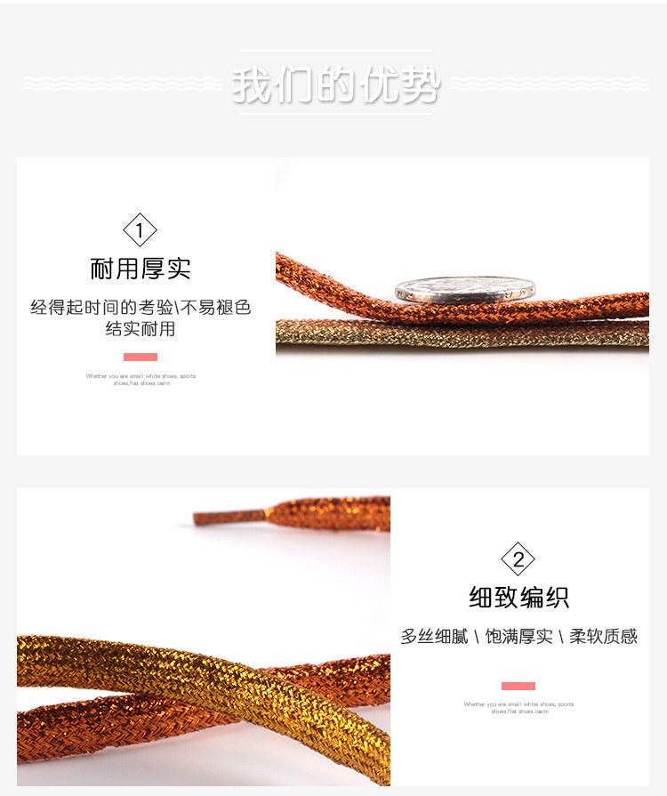 Золотые бронзовые металлические мигающие светоотражающие шнурки подходит для мужчин и женщин