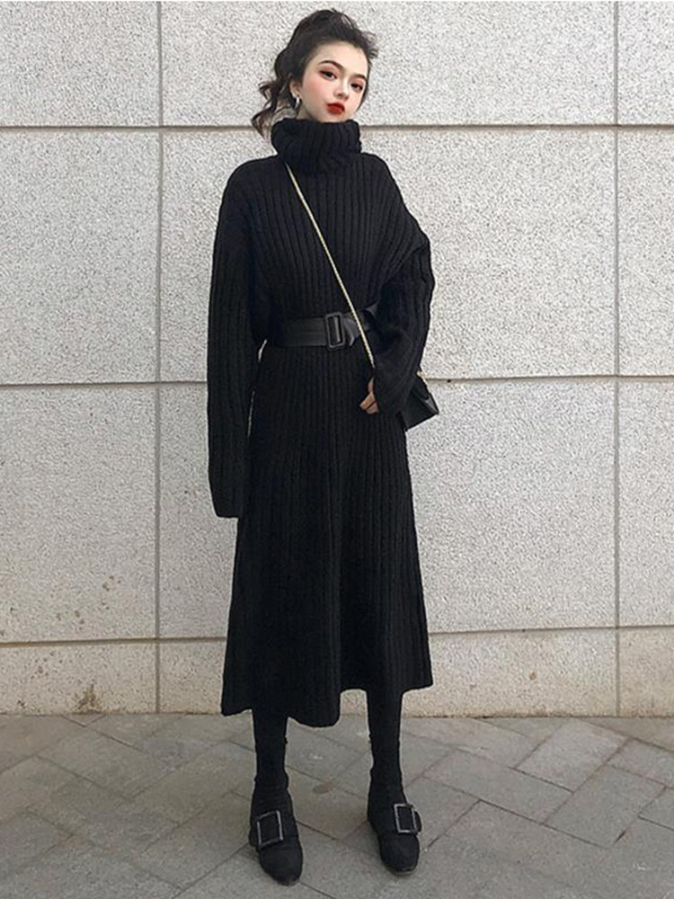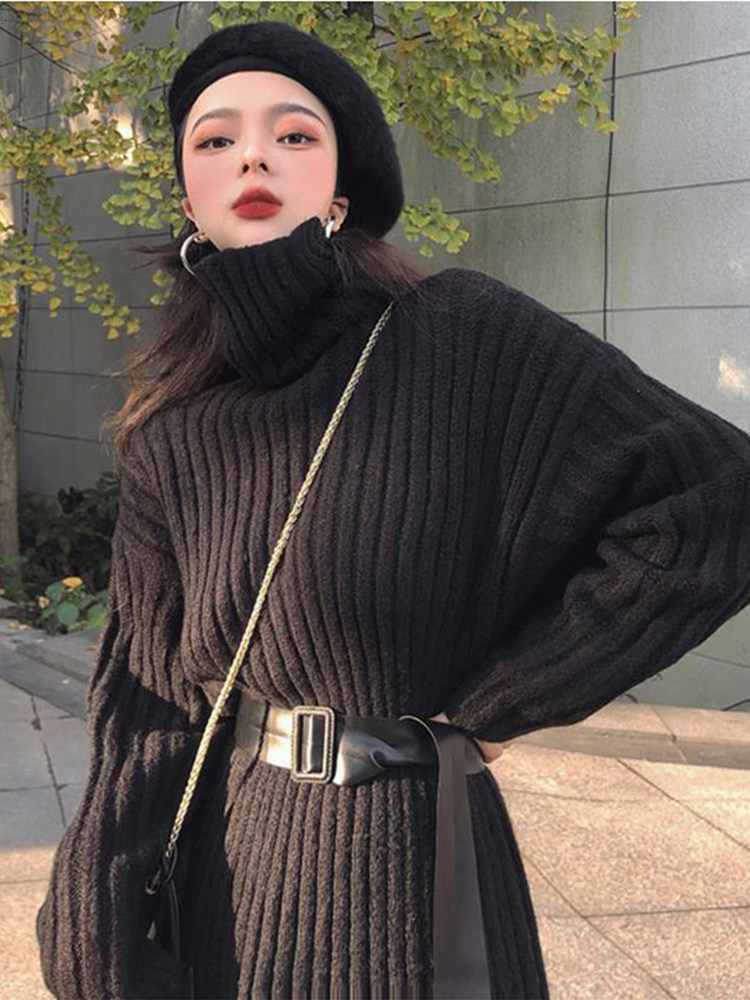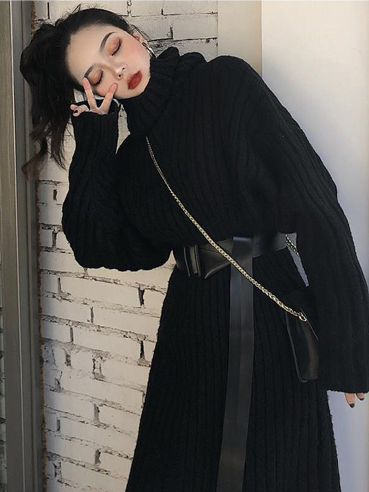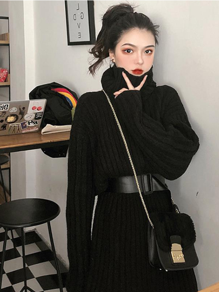 Черная вязаная машина осторожна в осенней и зимней французской в стиле ретро -студентов супер сказочная девушка -клян длинный и универсальный