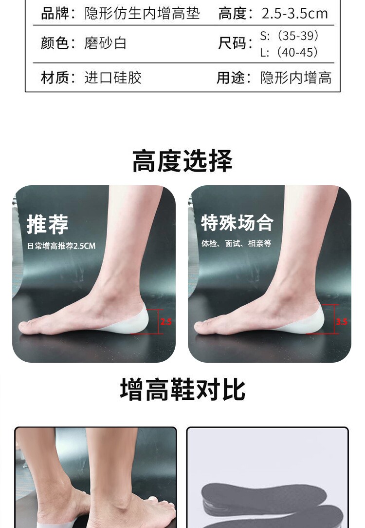 Мужские невидимые стельки для увеличения роста, напяточники, силиконовые полустельки, мягкая подошва