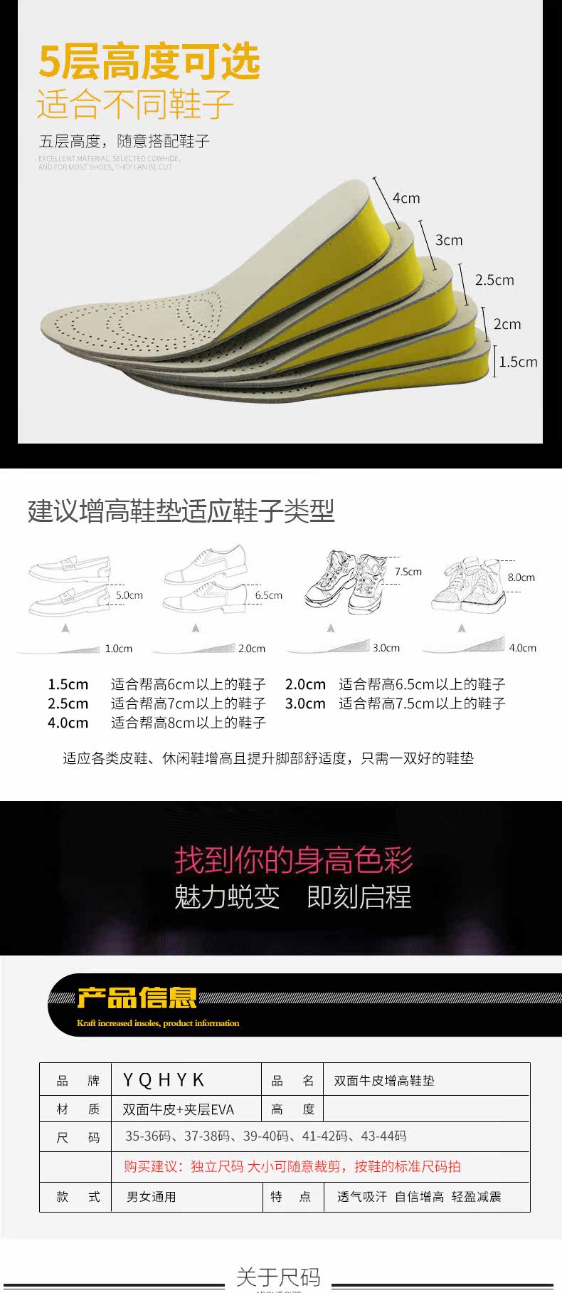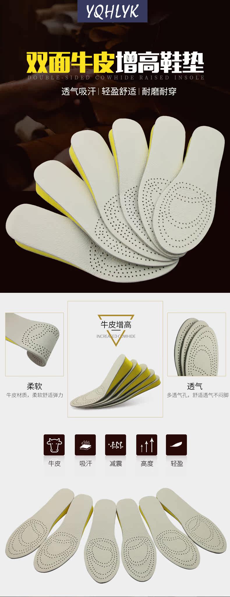 Двусторонние кожаные невидимые спортивные стельки для увеличения роста, впитывают пот и запах