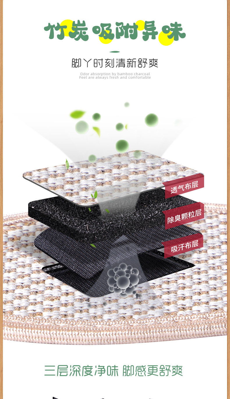 - [3 удвоения] Двустороннее льняное углеродное поглощение и дезодоризация, антидеодорная воздухопроницаемость 28-29 ярдов/19 см*