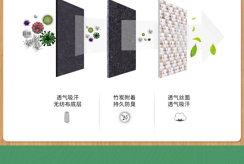 - [3 удвоения] Двустороннее поглощение и дезодоризация льняного углерода, антидеодорная воздухопроницаемость 22-23 ярдов/16 см*