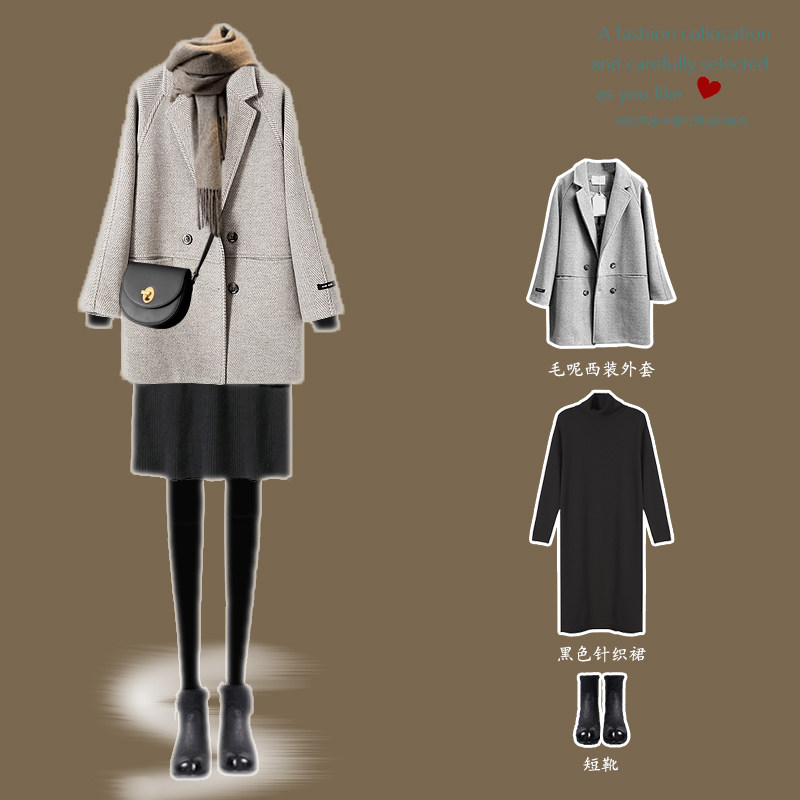 Осенний демисезонный ретро комплект, трикотажное платье, в стиле Шанель, французский стиль