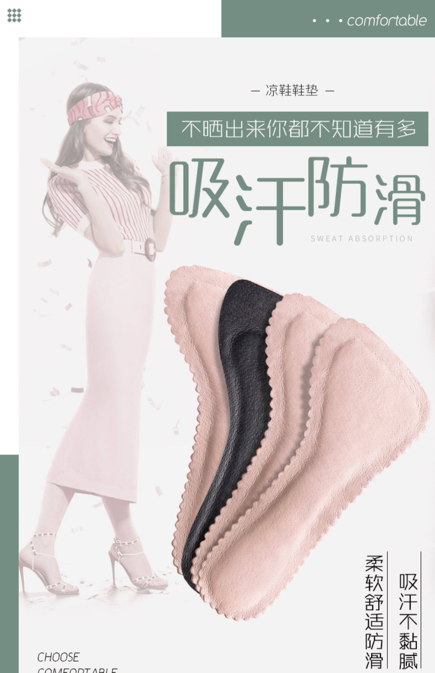 Нескользящие босоножки, коньки, самоклеющиеся ультратонкие стельки, комфортные летние туфли на высоком каблуке, впитывают пот и запах, мягкая подошва