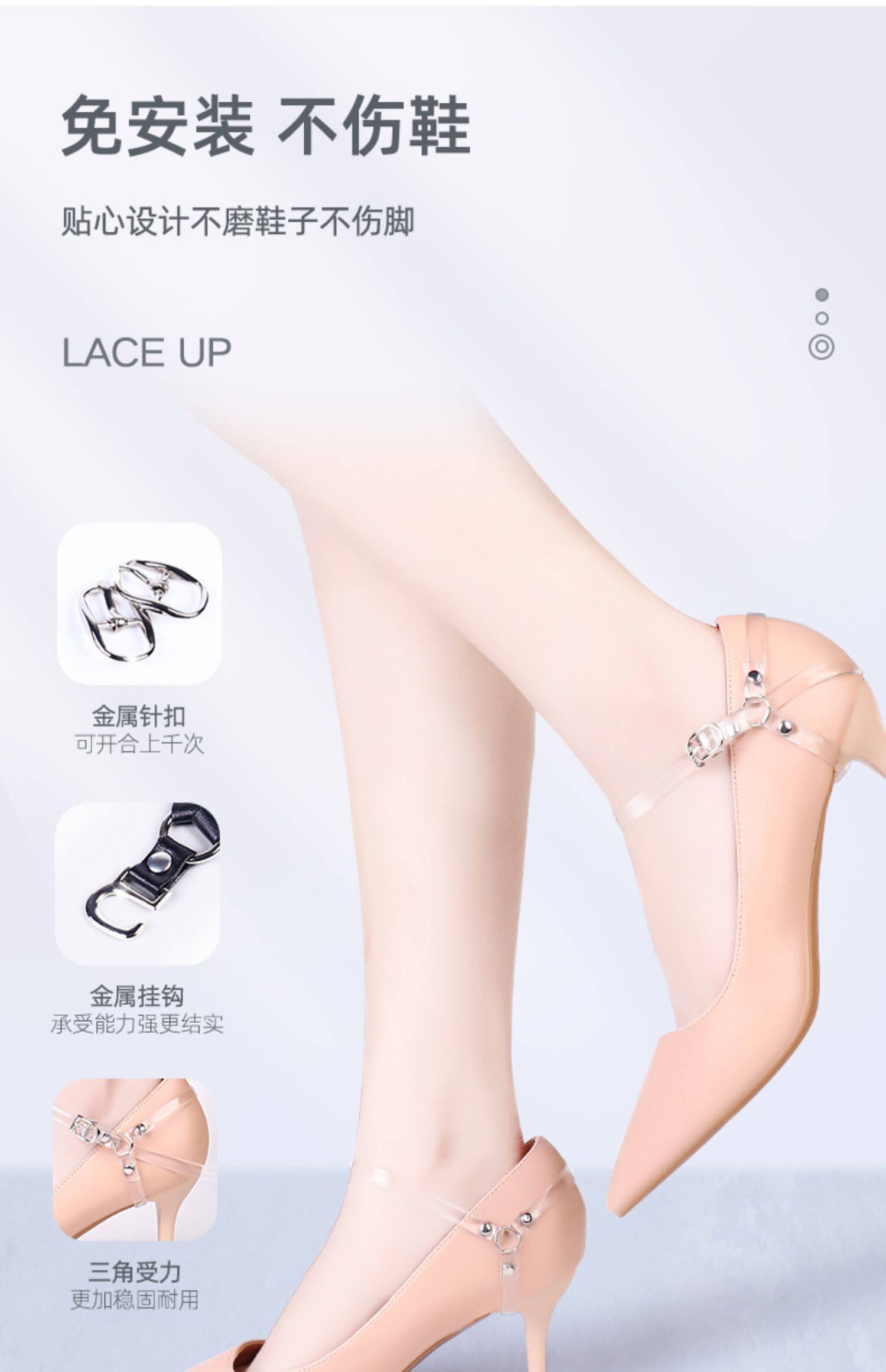 Туфли на высоком каблуке, шнурок-держатель, шнурки, фиксаторы для шнурков, ремень, фиксаторы в комплекте