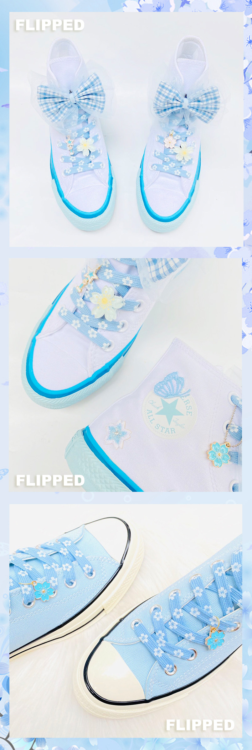 Перевернутая магазин Оригинальная адаптация AF1 AF1 Симпатичная система супер -молока FOG Blue Cherry Blossom Laces