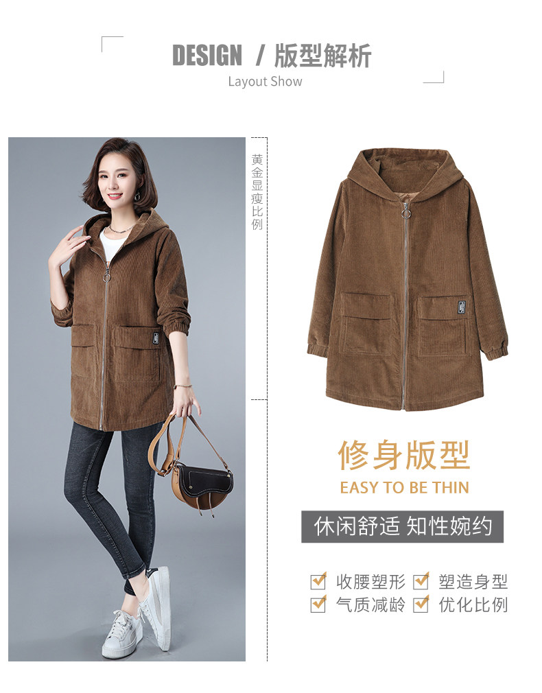 Вельветовая длинная хлопковая куртка, коллекция 2022, средней длины, большой размер