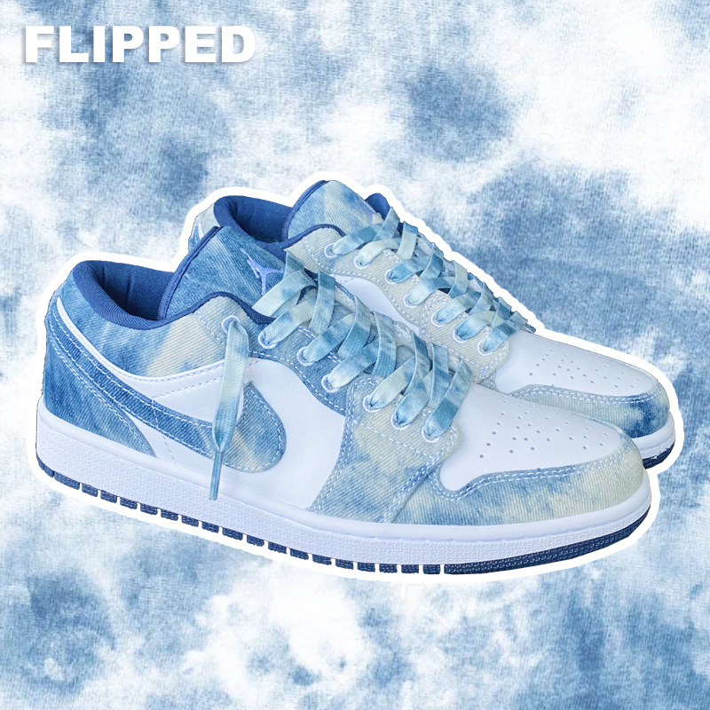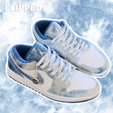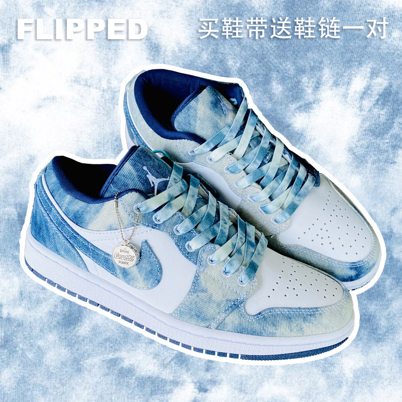 Перевернутый магазин Оригинальная адаптация AJ1LOW Вода для мытья танина AF1 Белое голубое небо голубое джинсовое галстук