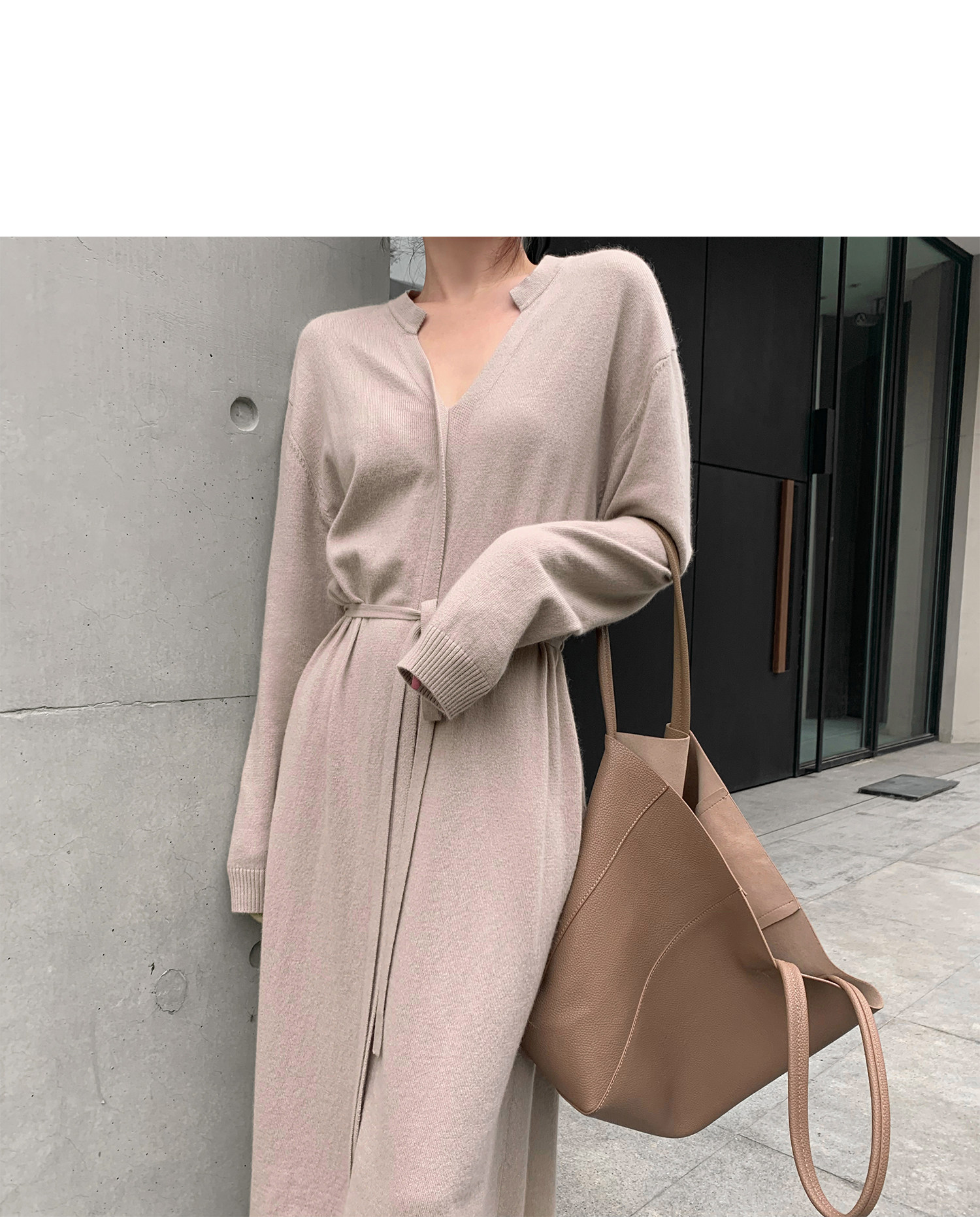 Демисезонный свитер, платье, длинный трикотажный корсет, в корейском стиле, яркий броский стиль, средней длины