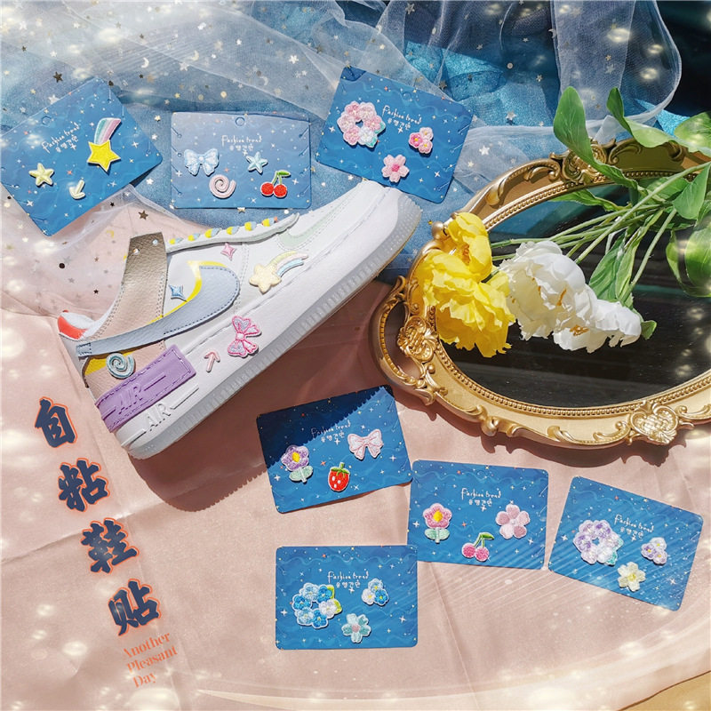 Белая обувь, аксессуар с бантиком, самоклеющаяся клубника с аксессуарами, с вышивкой
