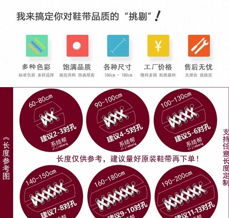 | Цвет: | Черно -белый (круглый), 140 см принимает стиль и цвет замечаний, Длина по умолчанию составляет 120 см/два (одна пара), Белый и черный (плоский), 140-любая длина может быть настроена (подключена к разнице), 100 см принимает стиль и цвет замечаний, Черно -белый (квартира), Белый и черный (круглый) |