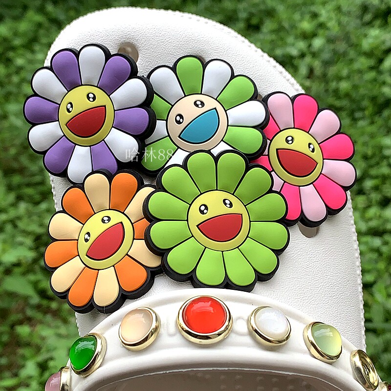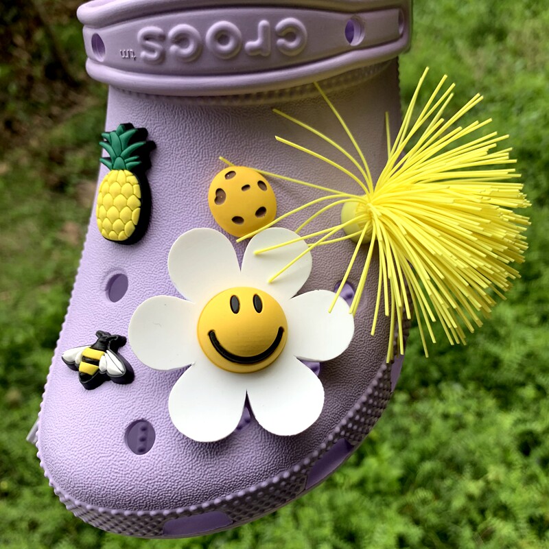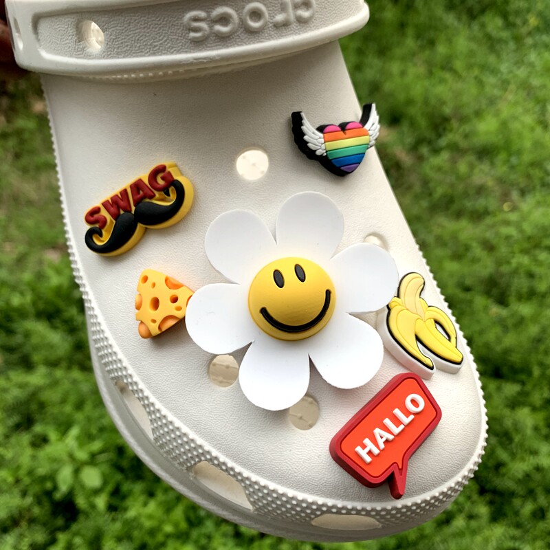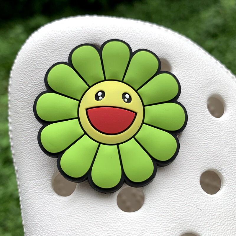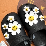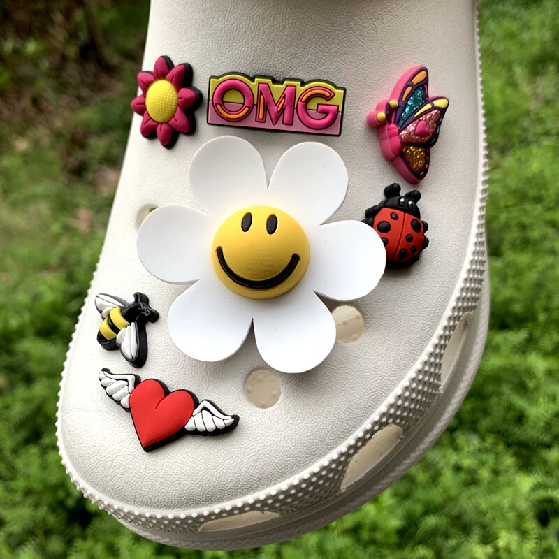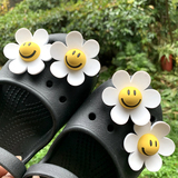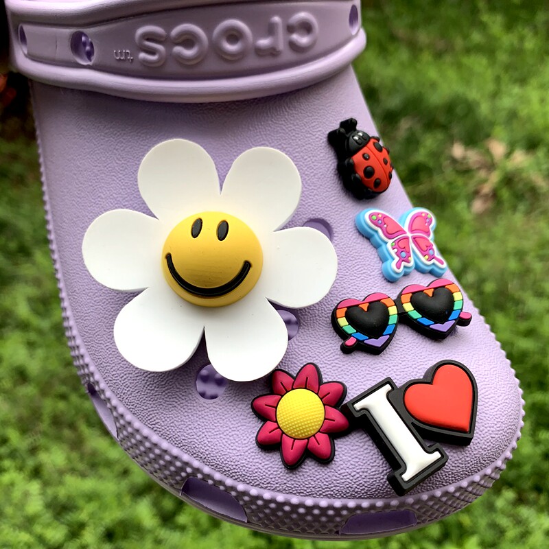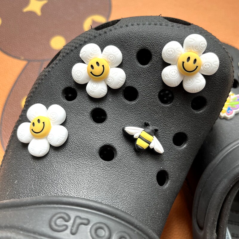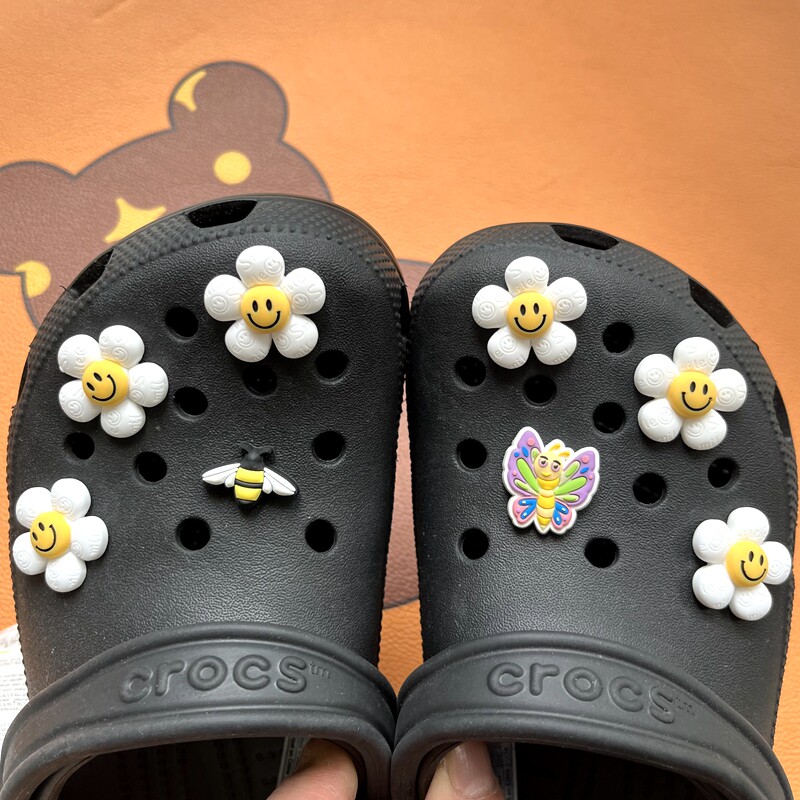 Обувь Crocs, цветок, штука для обуви, Улыбающаяся дырочная туфли, Daisy Smiley Face, Sun Flower, Bear, сочетание вишни