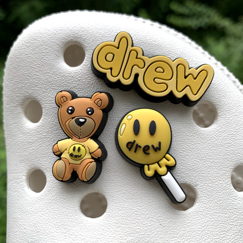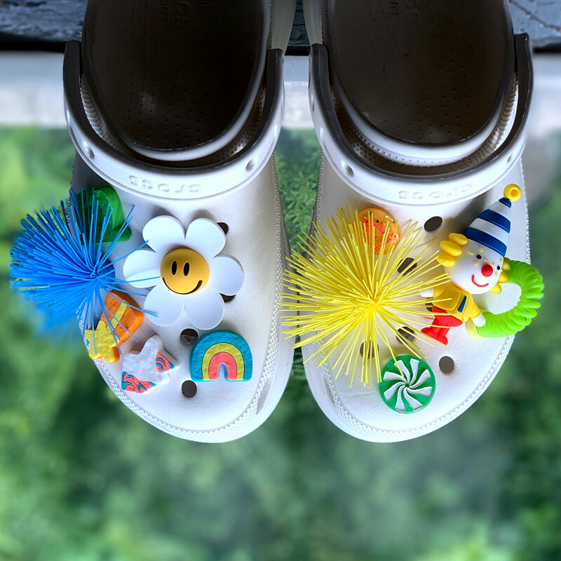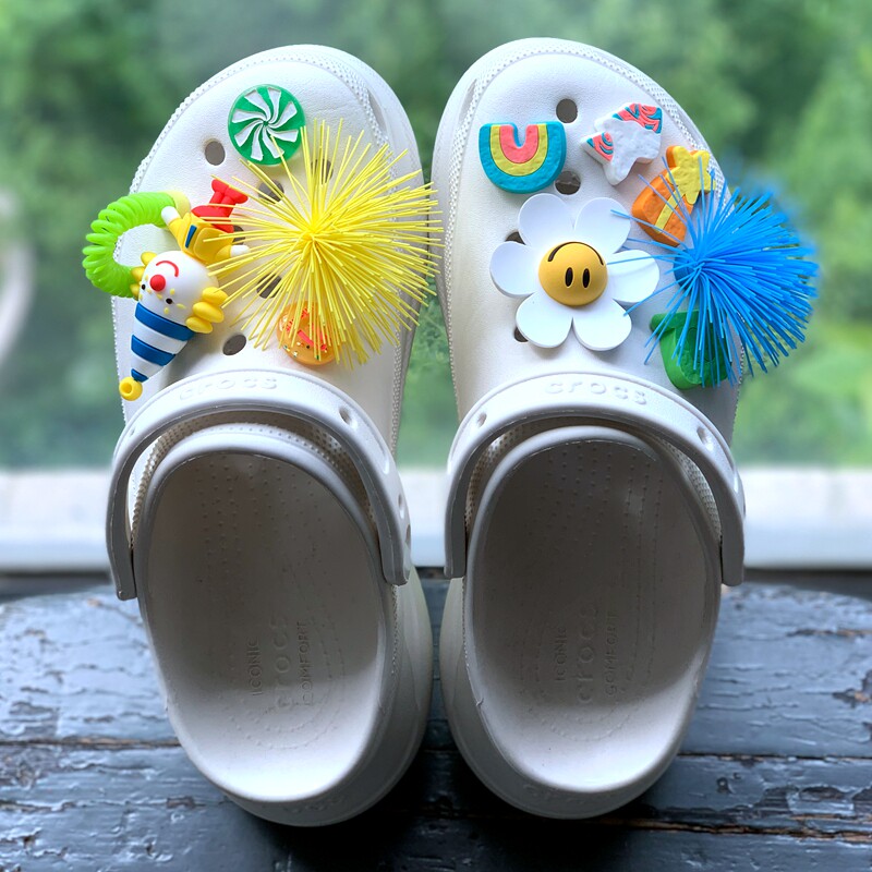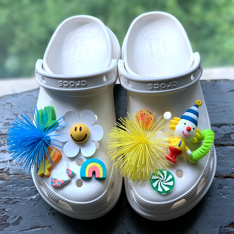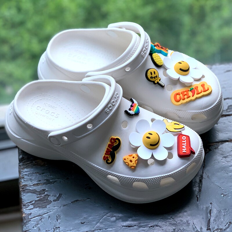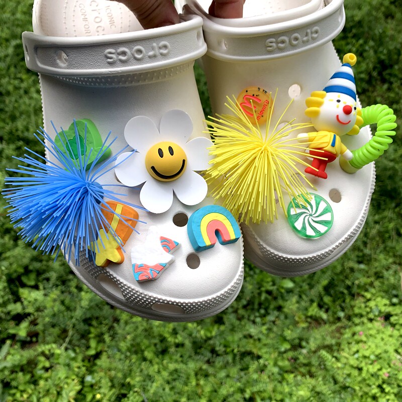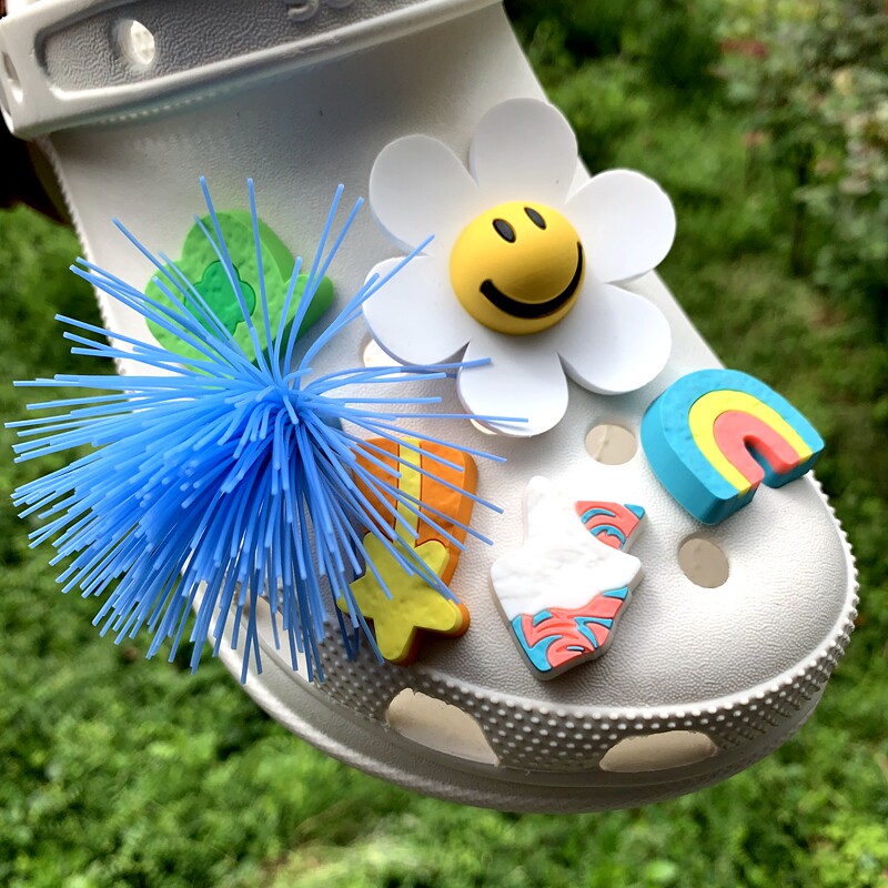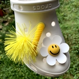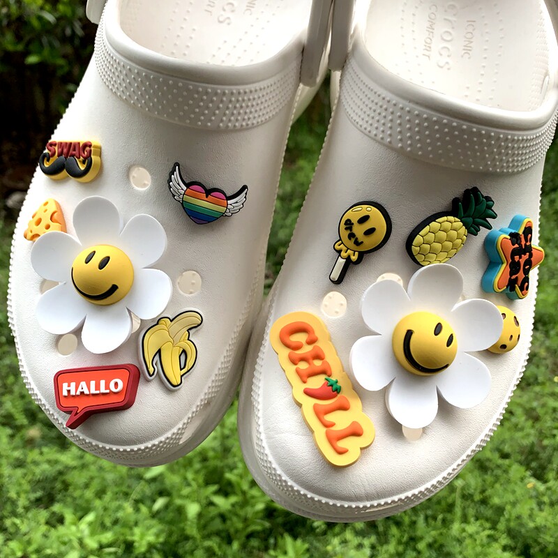 Обувь Crocs, цветок, штука для обуви, Улыбающаяся дырочная туфли, Daisy Smiley Face, Sun Flower, Bear, сочетание вишни