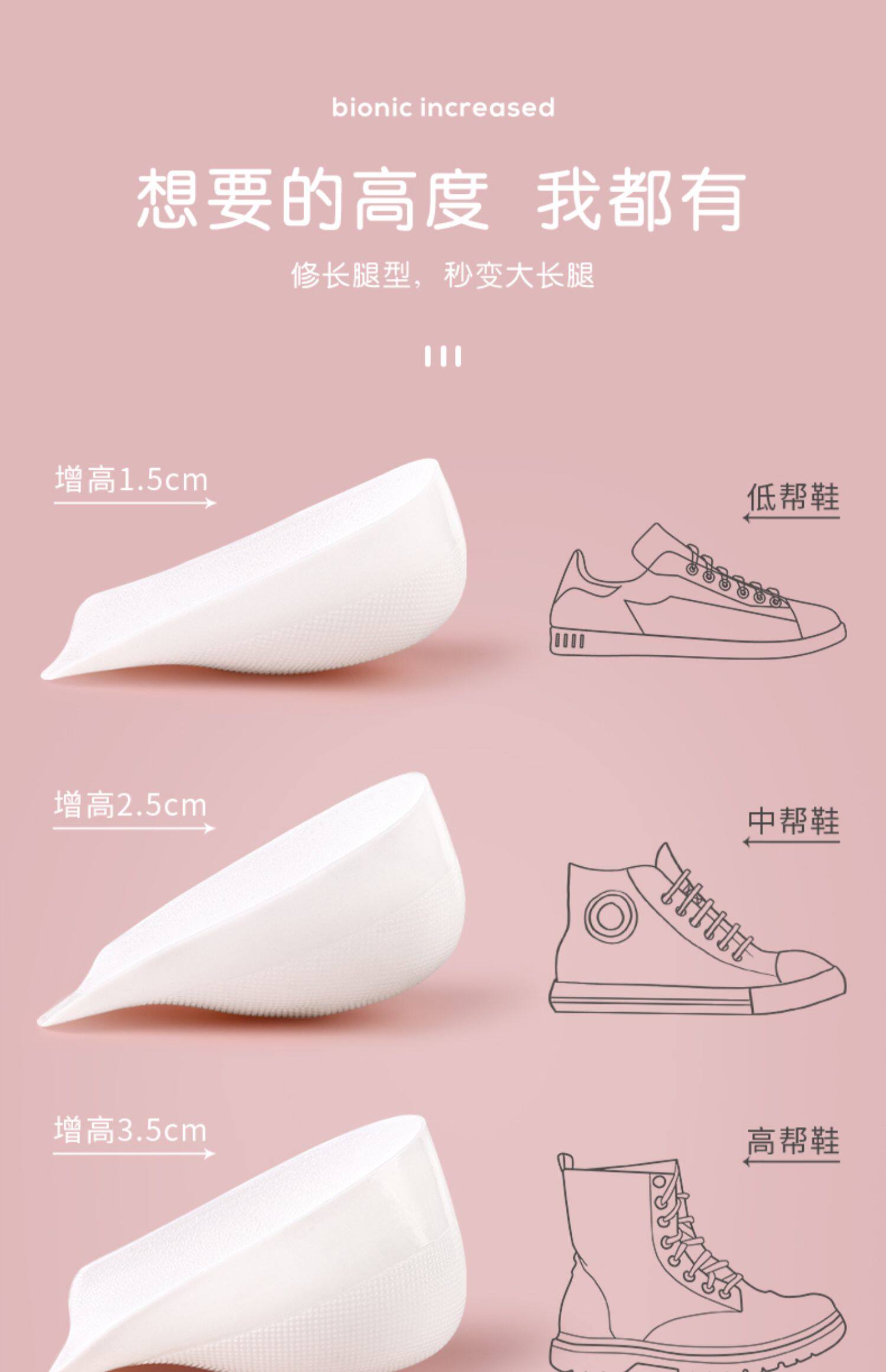 | Цвет: | Невидимое увеличение высоты +1,5 см., Невидимое увеличение высоты +2,5 см., Невидимое увеличение высоты +3,5 см., [Комбинация обновления] Силиконовый чехол на пятку/+1,5 см, [Комбинация обновления] Силиконовый чехол на пятку/+2,5 см, [Комбинация обновления] Силиконовый чехол на пятку/+3,5 см |