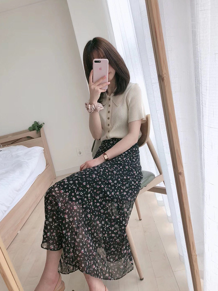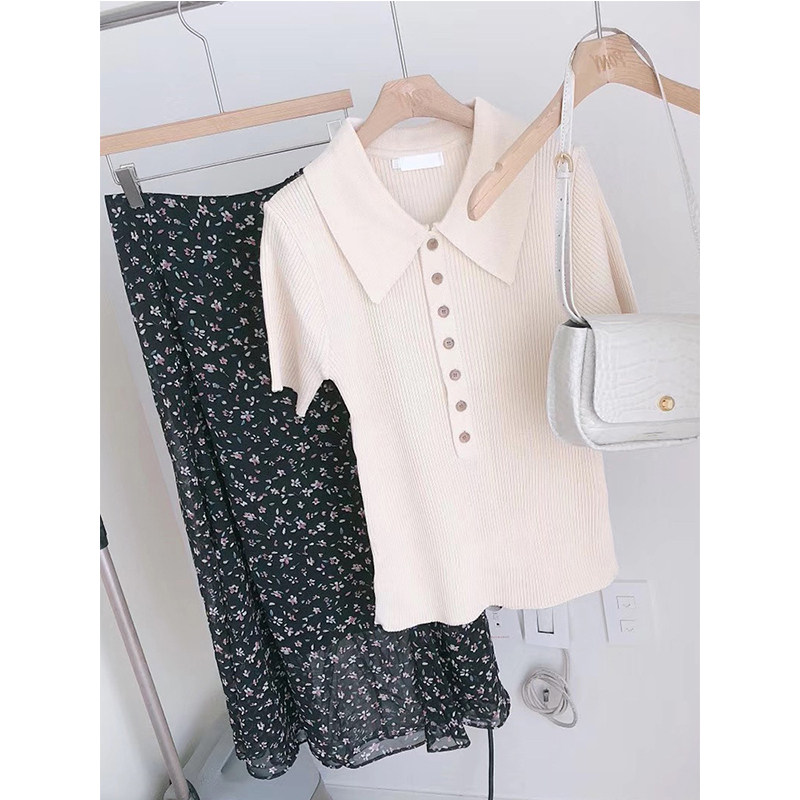 Ретро кардиган, комплект, коллекция 2022, французский стиль, в цветочек