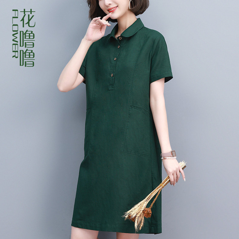 Платье, из хлопка и льна, свободный крой