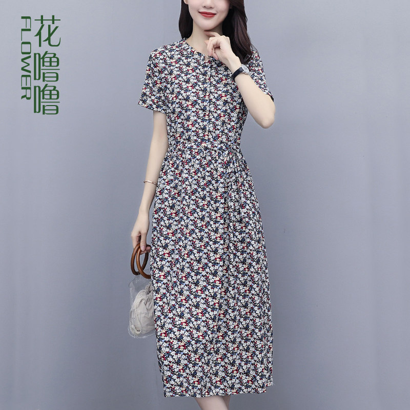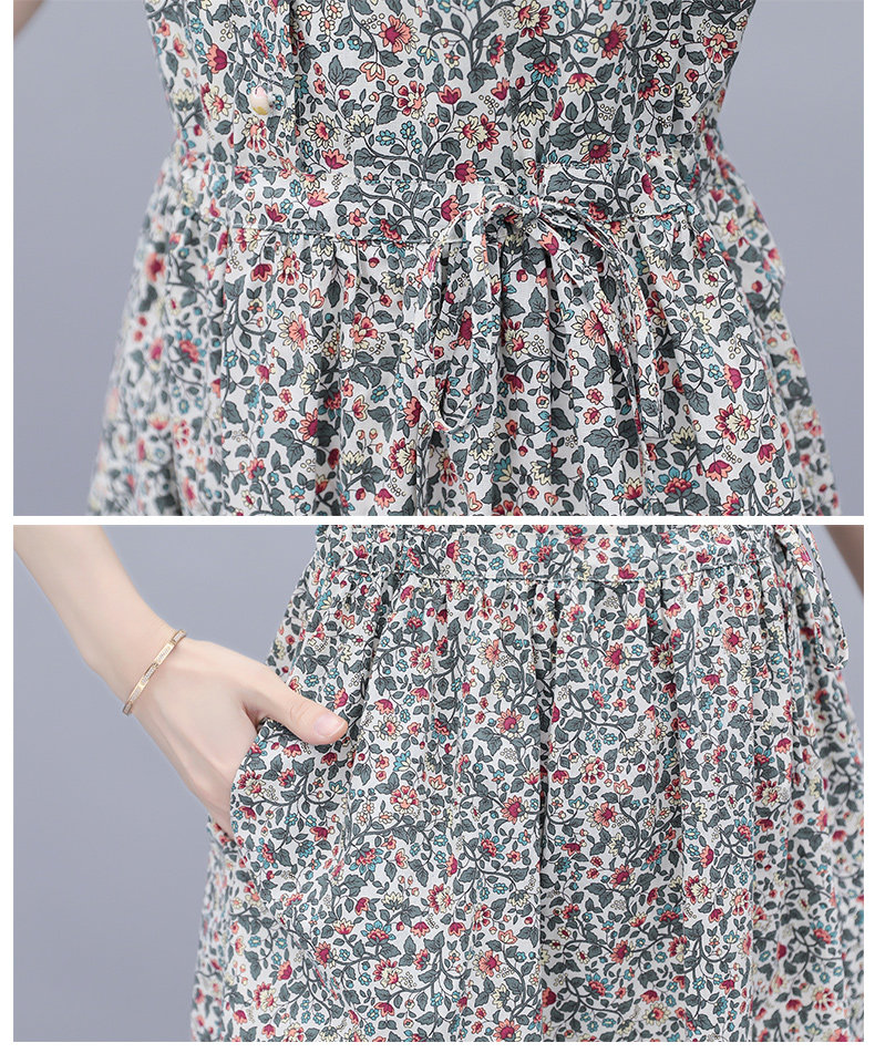 Хлопковое модное платье, цветочный принт, на шнурках