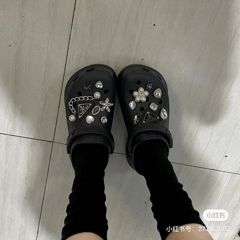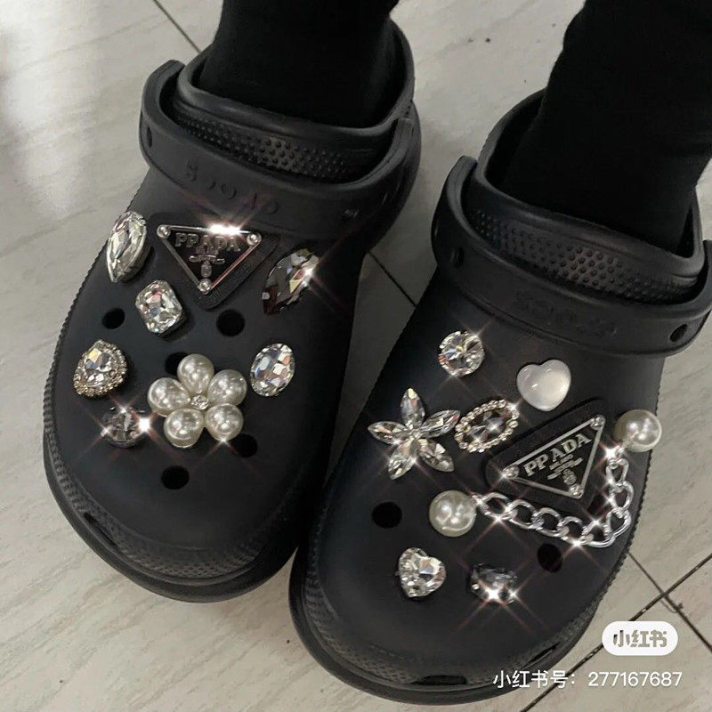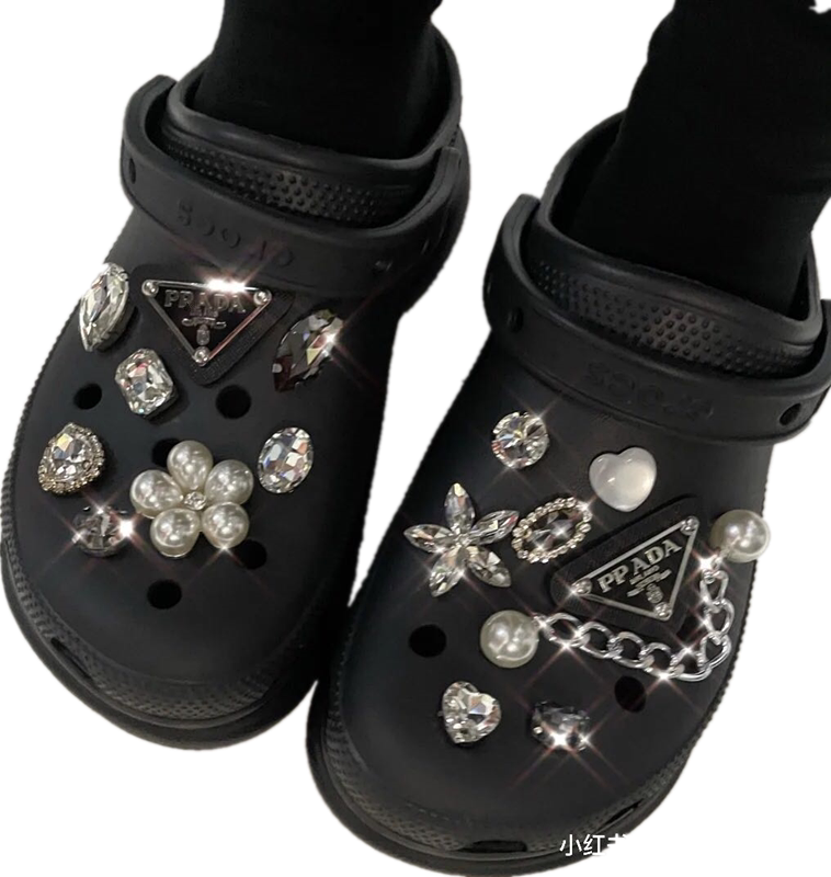 Crocs, съемный аксессуар, тапочки, цепь из жемчуга, пряжка для обуви в виде сердечка, DIY