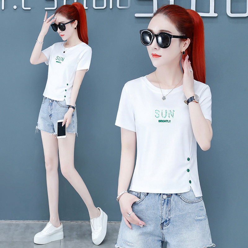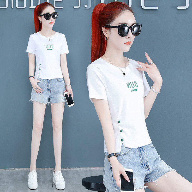 Короткая футболка, летняя одежда, штаны, коллекция 2022, высокая талия, короткий рукав