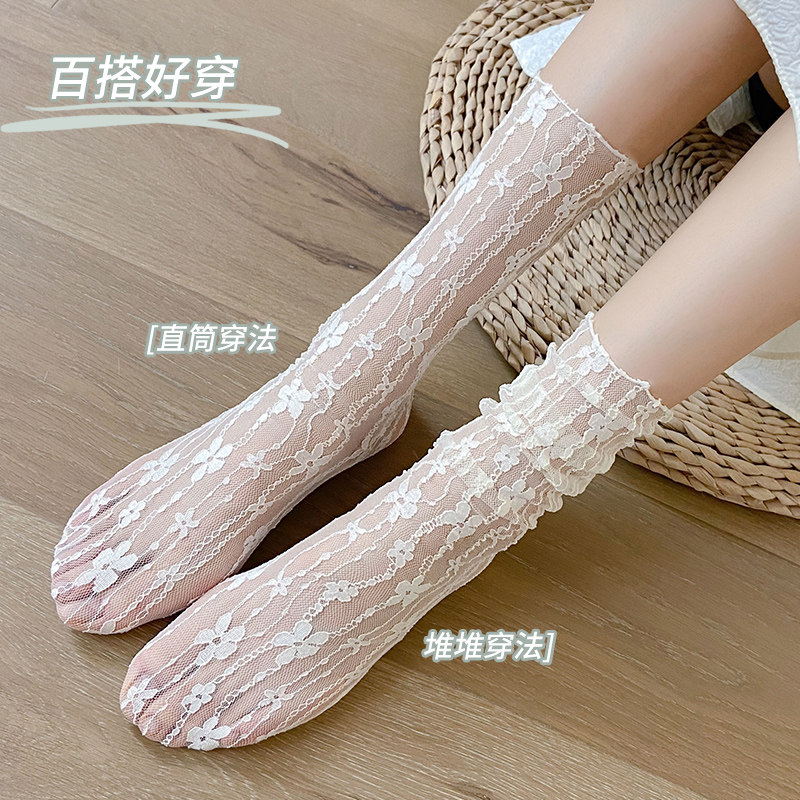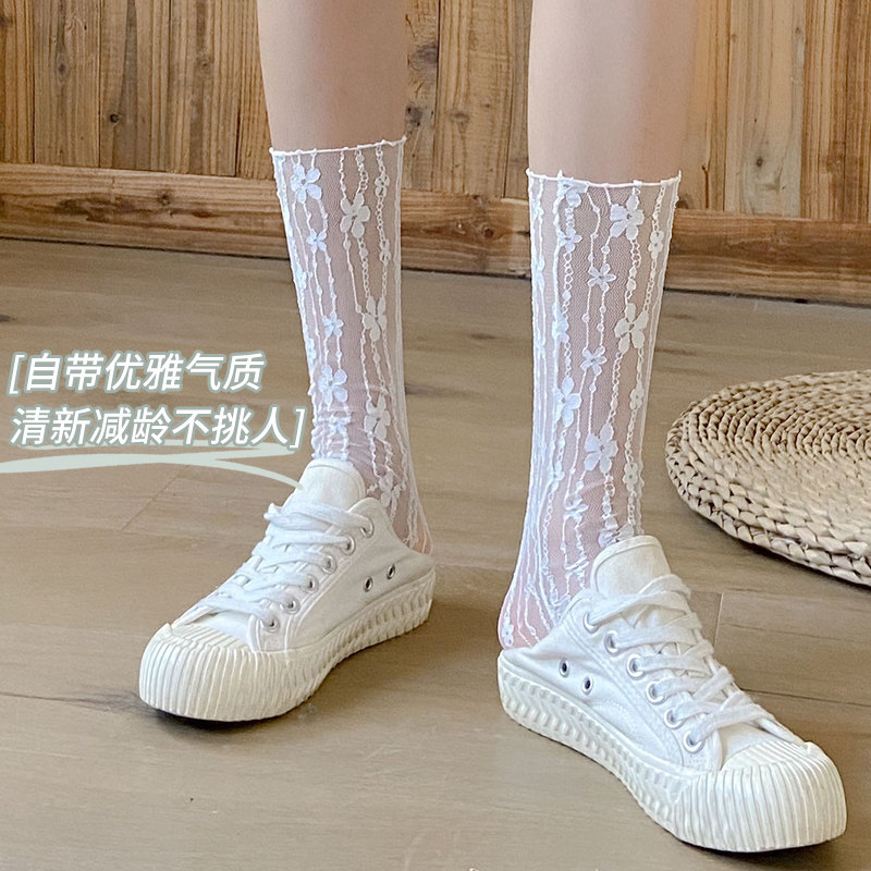 Tide, носки, кружевные летние тонкие милые японские белые гольфы, средней длины