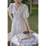 Летняя приталенная длинная юбка, милая рубашка, платье, высокая талия, французский стиль, рукава фонарики