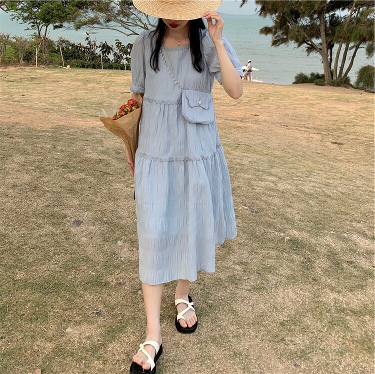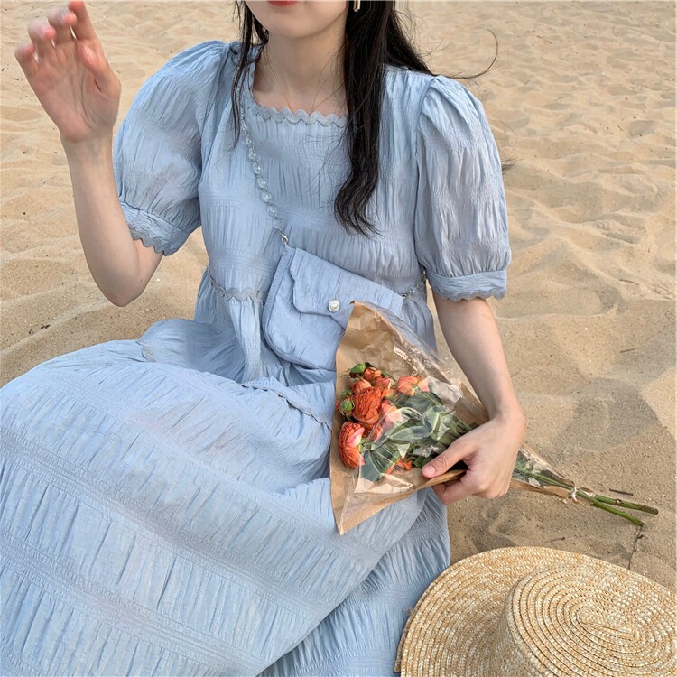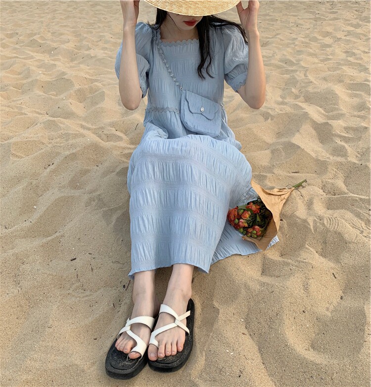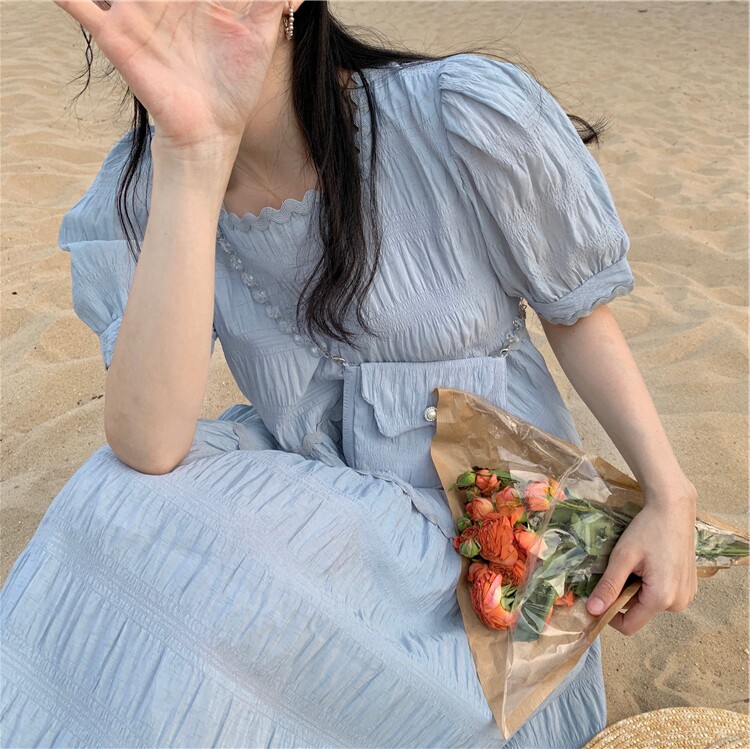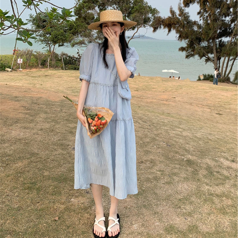 Летнее милое платье, длинная юбка, подходит для подростков, французский стиль, длина макси