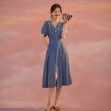 Ретро дизайнерская длинная юбка, летнее джинсовое платье, коллекция 2023, французский стиль, тренд сезона