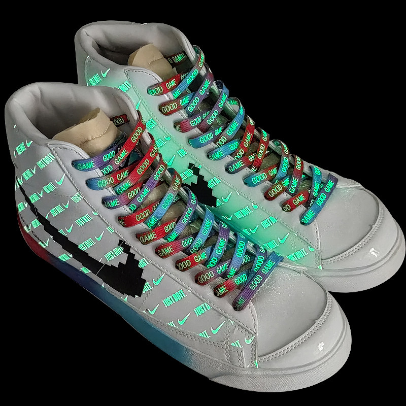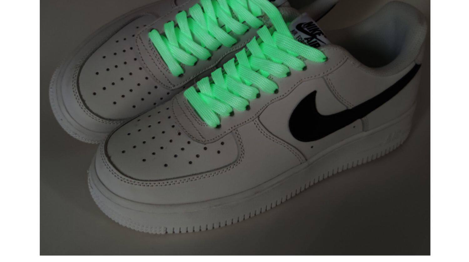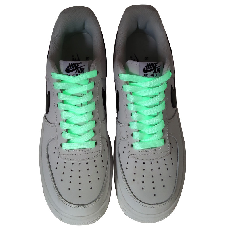 Цвет: Флуоресцентные шнурки, Флуоресцентные шнурки, Флуоресцентные шнурки, Флуоресцентные шнурки, Флуоресцентные шнурки, Мятные флуоресцентные шнурки, Белый фон просто (зеленый светящий) шнурки, Белые нижние шнурки (синие светящиеся), Белый дно Goodgame Night Light, Градиент просто ночной свет шнунок, Градиент Goodgame Nights Belt, Nike Air Force 1, белая пряжка для обуви