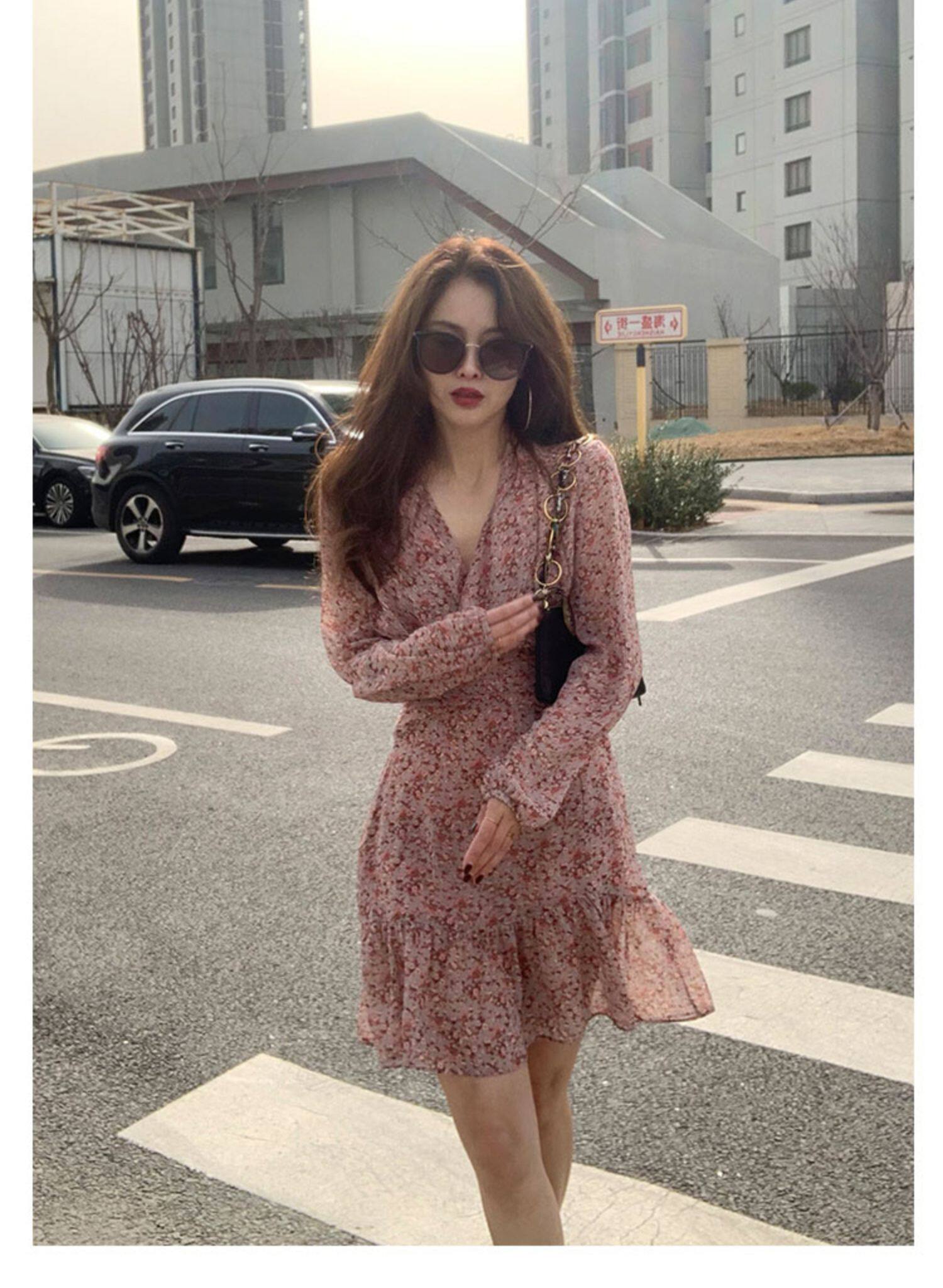 Приталенный демисезонный корсет, милое платье, яркий броский стиль, 2023, французский стиль, в цветочек