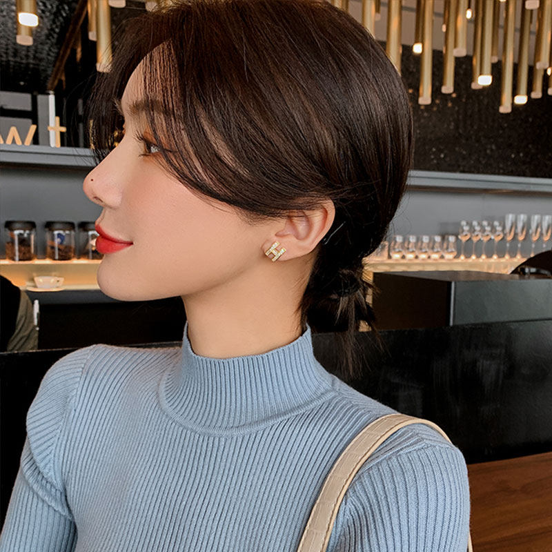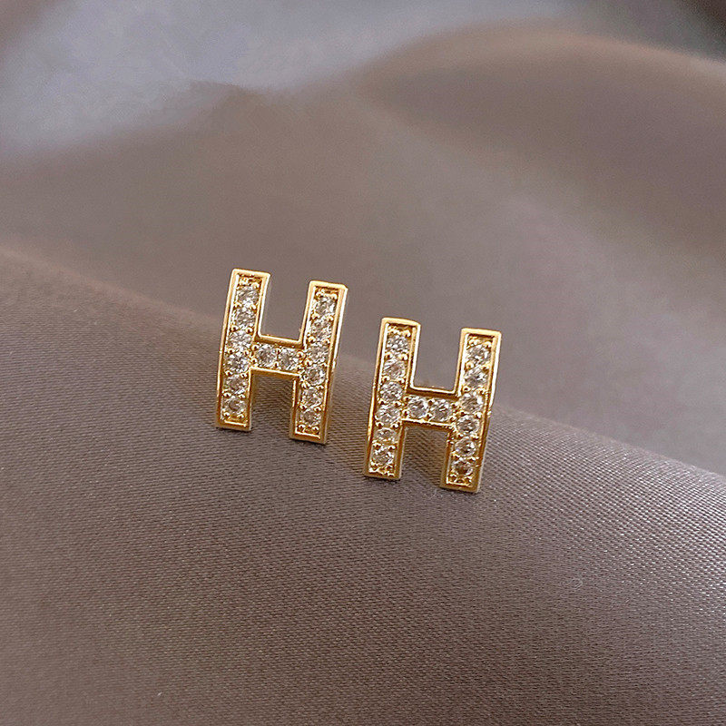 Caring Koko Модные серьги с буквами, инкрустировано бриллиантами, легкий роскошный стиль, французский стиль, изысканный стиль