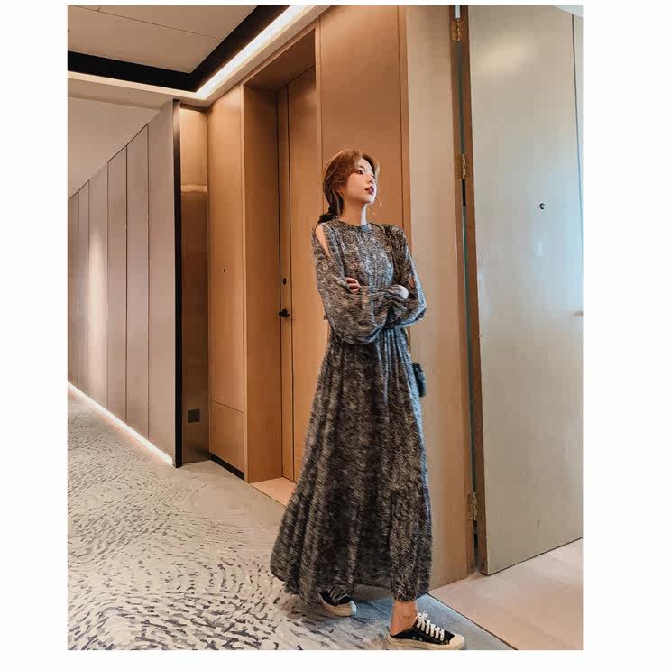 Весенний лонгслив, шифоновое платье, длинная юбка, 2022, городской стиль, французский стиль, яркий броский стиль