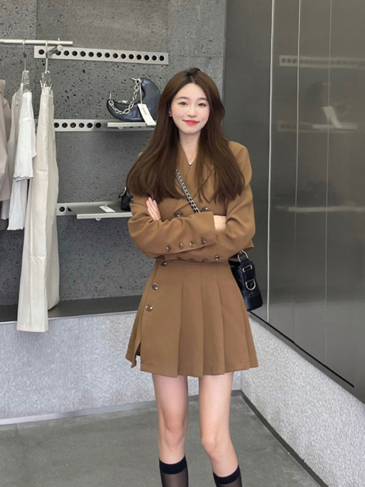 Демисезонный пиджак классического кроя, юбка в складку, комплект, 2021 года, популярно в интернете, в стиле Шанель