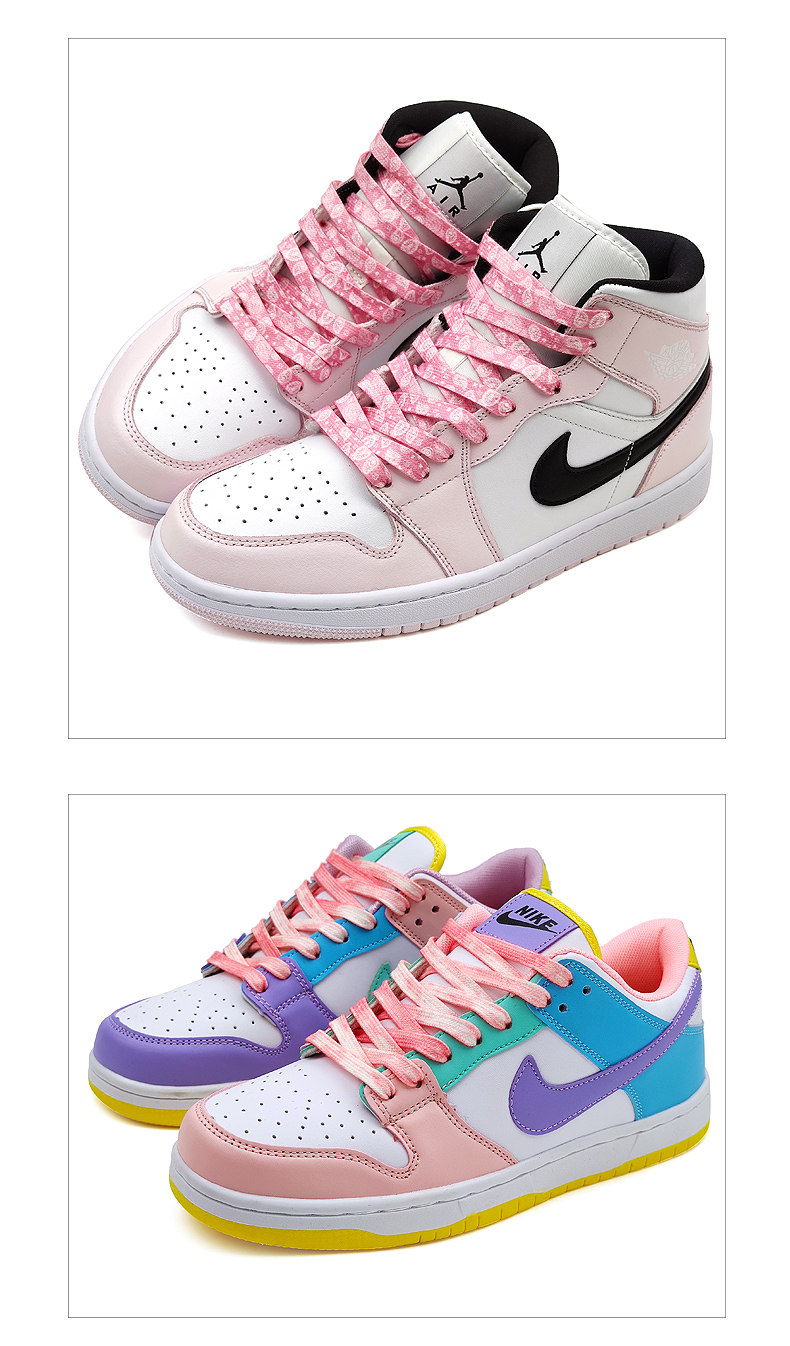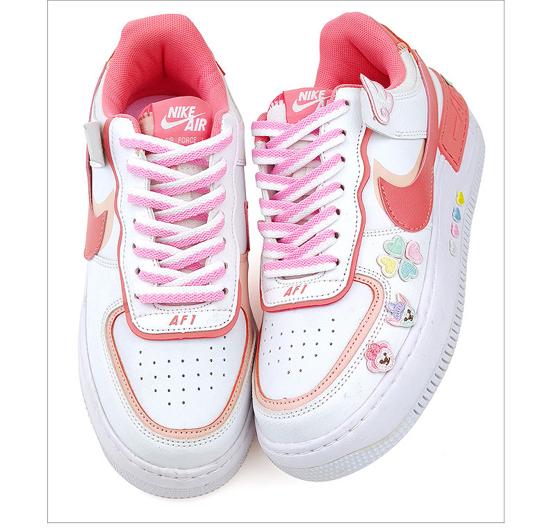 Nike Air Force 1, Air Jordan 1, розовые шнурки, баскетбольная белая белая обувь