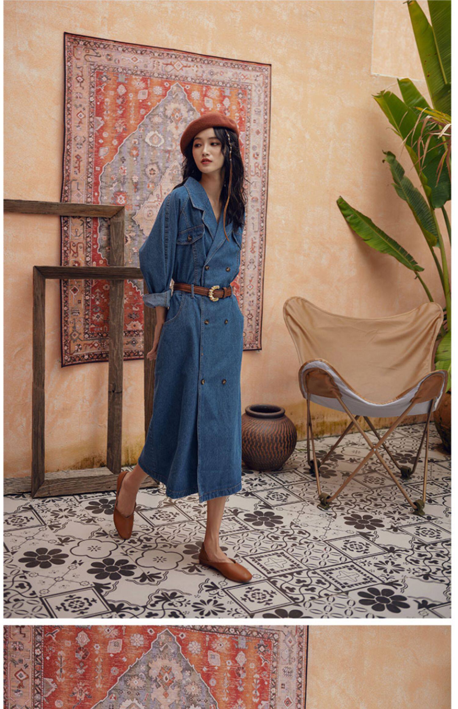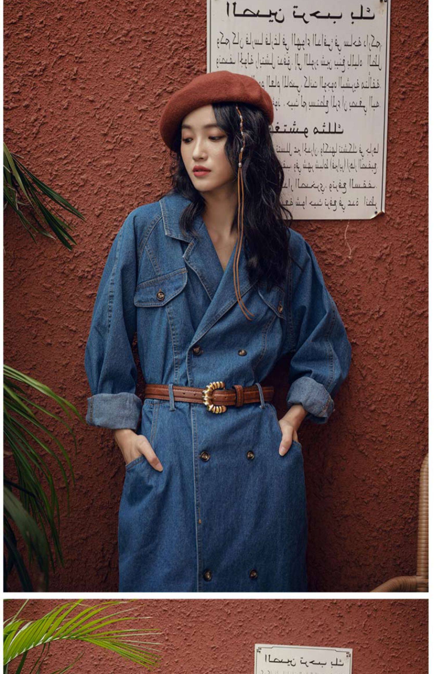 Осенняя ретро джинсовая юбка, длинный приталенный корсет, костюм, платье, французский стиль, изысканный стиль, средней длины
