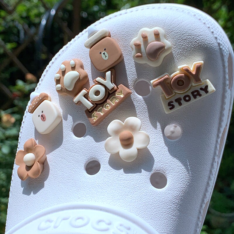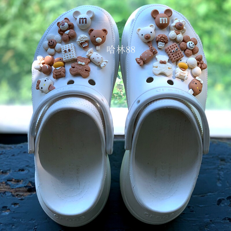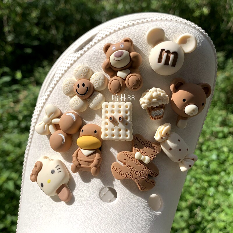 Цветной Мика с подсолнухом, медведем, утенком, мороженым, конфетами, кавайные туфли-кроксы, обувь с цветочной пряжкой и мультяшной пряжкой