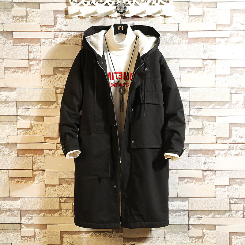 Демисезонный длинный утепленный плащ для мальчиков, трендовая толстовка с капюшоном, куртка, в корейском стиле, большой размер