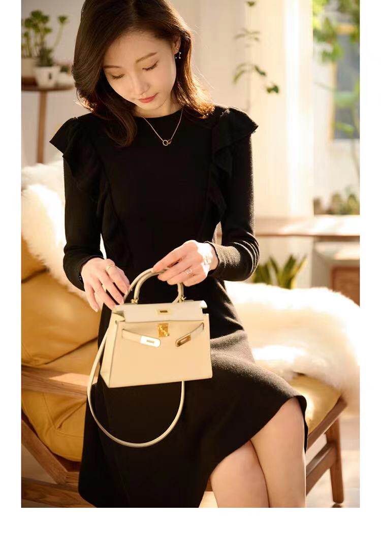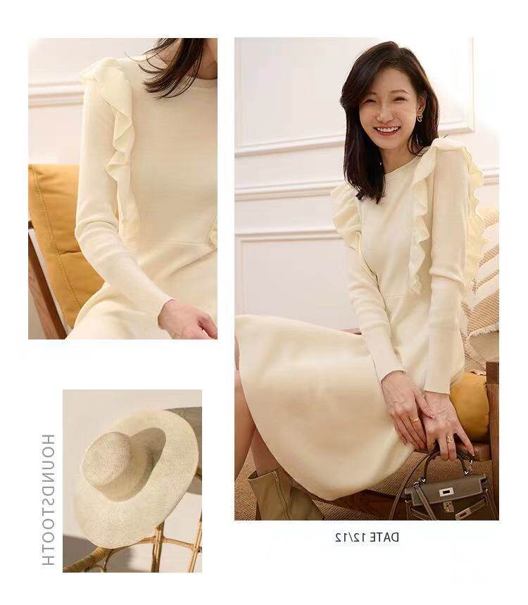 Элитное трикотажное демисезонное шерстяное платье, французский стиль, коллекция 2022